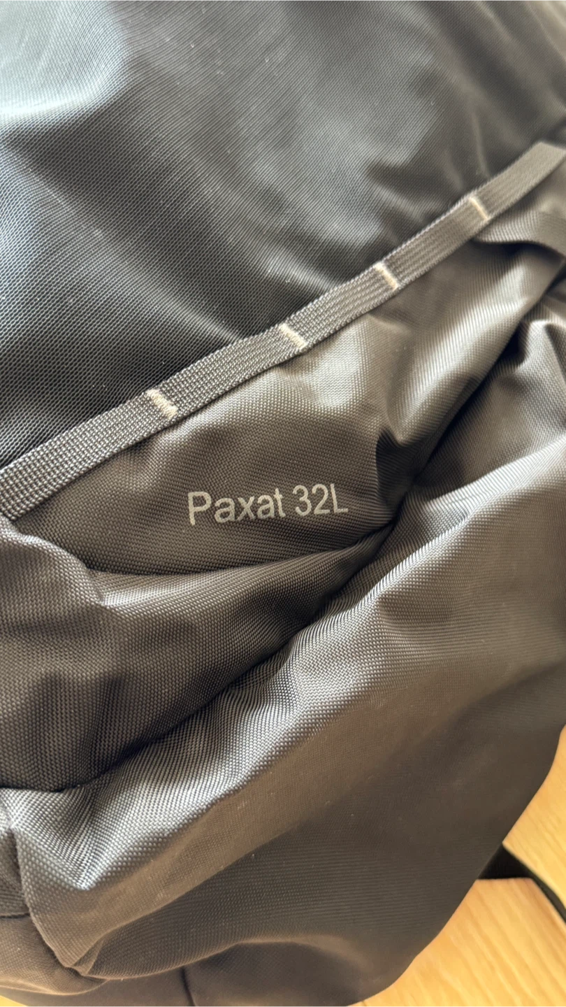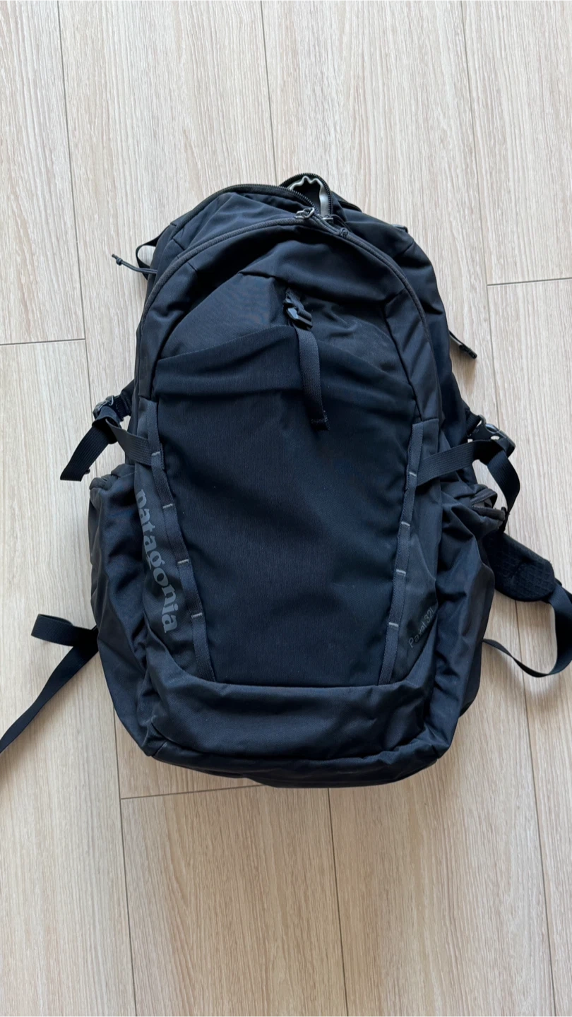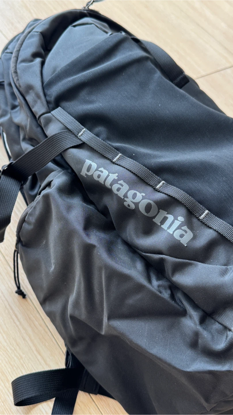 Patagonia backpack with Paxat 32L model. It's black and has multiple compartments for storage. Great for carrying your gear on hikes or daily commutes!