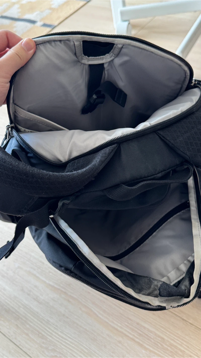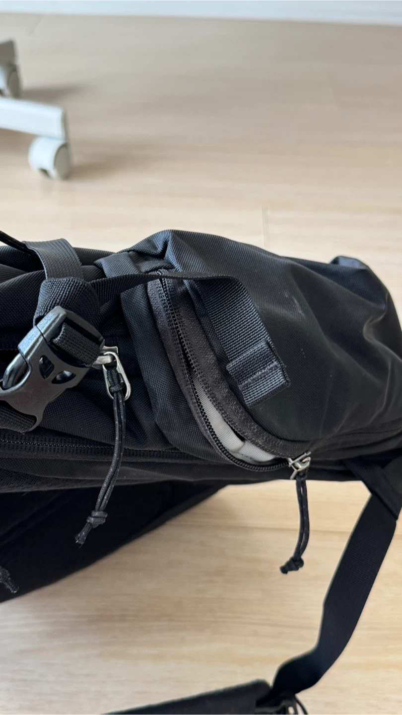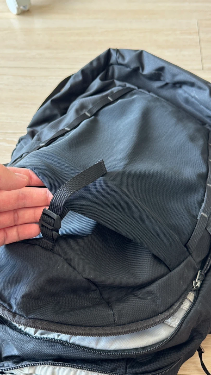 Patagonia backpack with Paxat 32L model. It's black and has multiple compartments for storage. Great for carrying your gear on hikes or daily commutes!