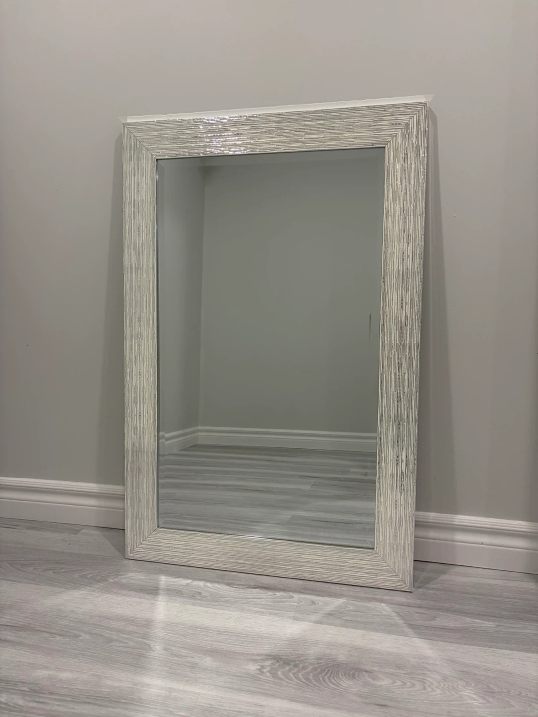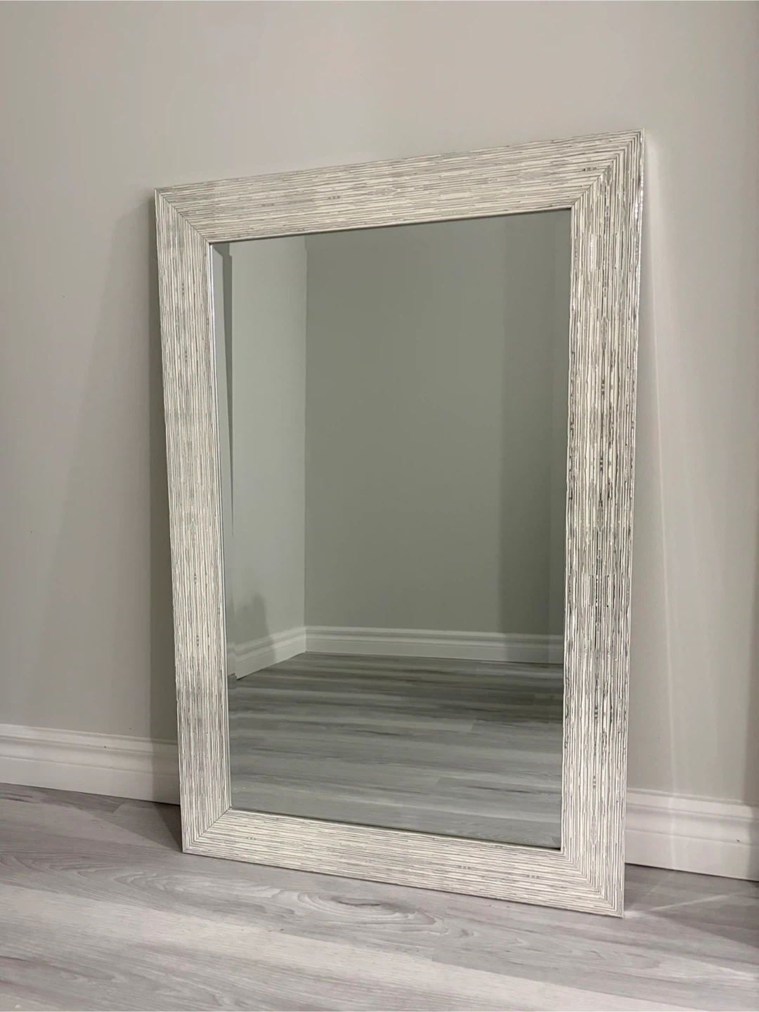 White + Silver Beveled Mirror 23x35 in