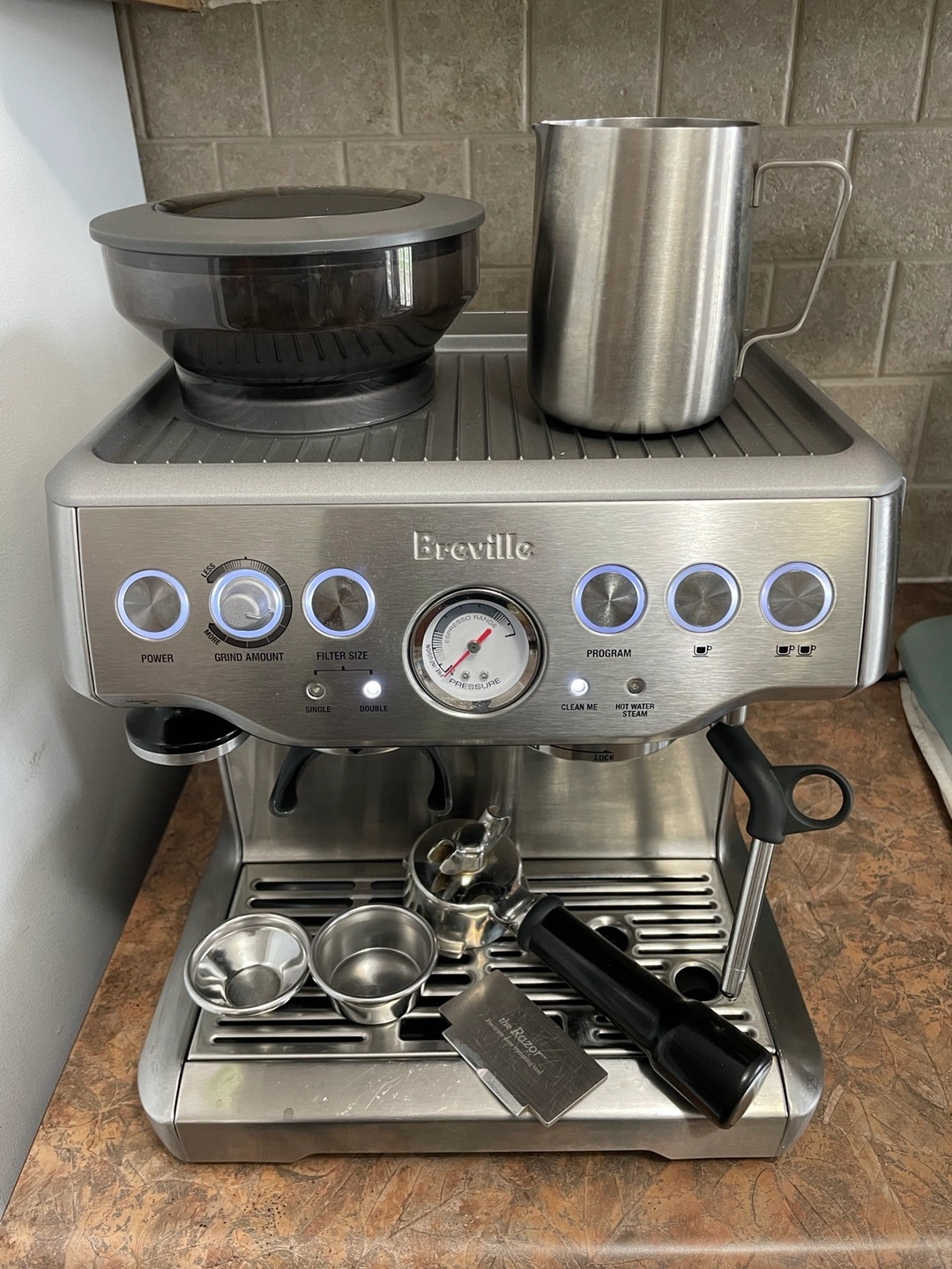 Buy & SellBreville Espresso MachineBreville Espresso Machine$450Cleanly used Breville espresso machine (BES870XL/A). Manual and parts included as shown in the photo.ConditionLike newBrandBrevilleWHERE TO MEETSouthside PlaceView MapSELLERKimMountview382 reviews0 chats·0 favorites·37 viewsSEND CHAT TO SELLERHi Kim! I’m interested in your listing.Hi Kim! I’m interested in your listing.Get the Karrot app to chatSign In to chat