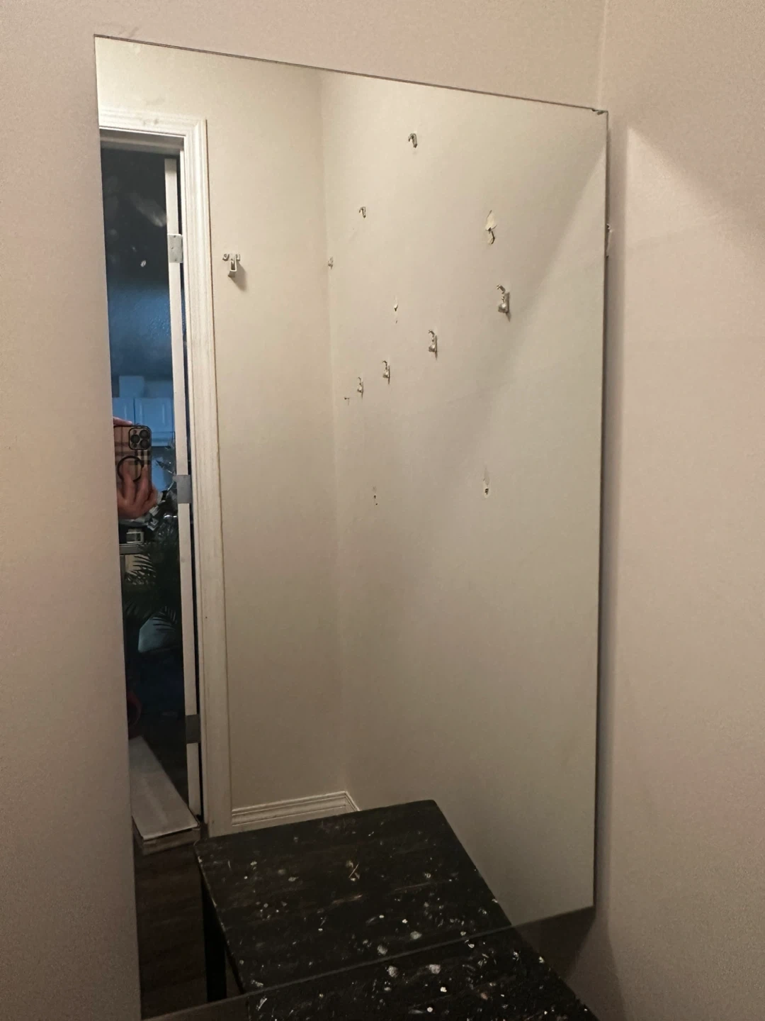 A generously sized wall mirror. It's perfect for checking your outfit or adding a sense of space to an entryway. The reflective surface is clear and ready for hanging.
