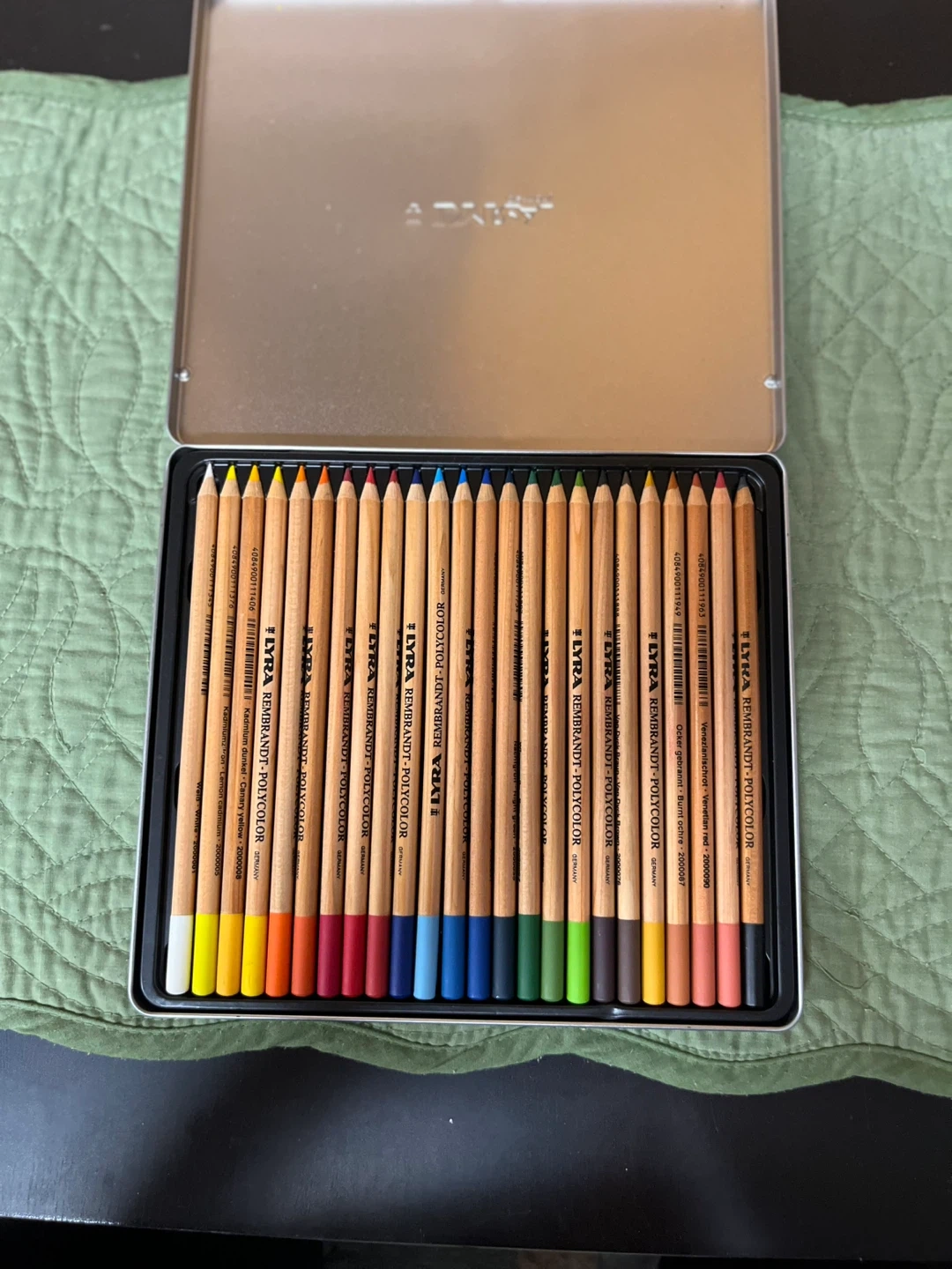 This set contains Lyra Rembrandt Polycolor pencils in a metal tin. The pencils are designed for artists and feature vibrant colours. This is a great set for sketching and colouring!