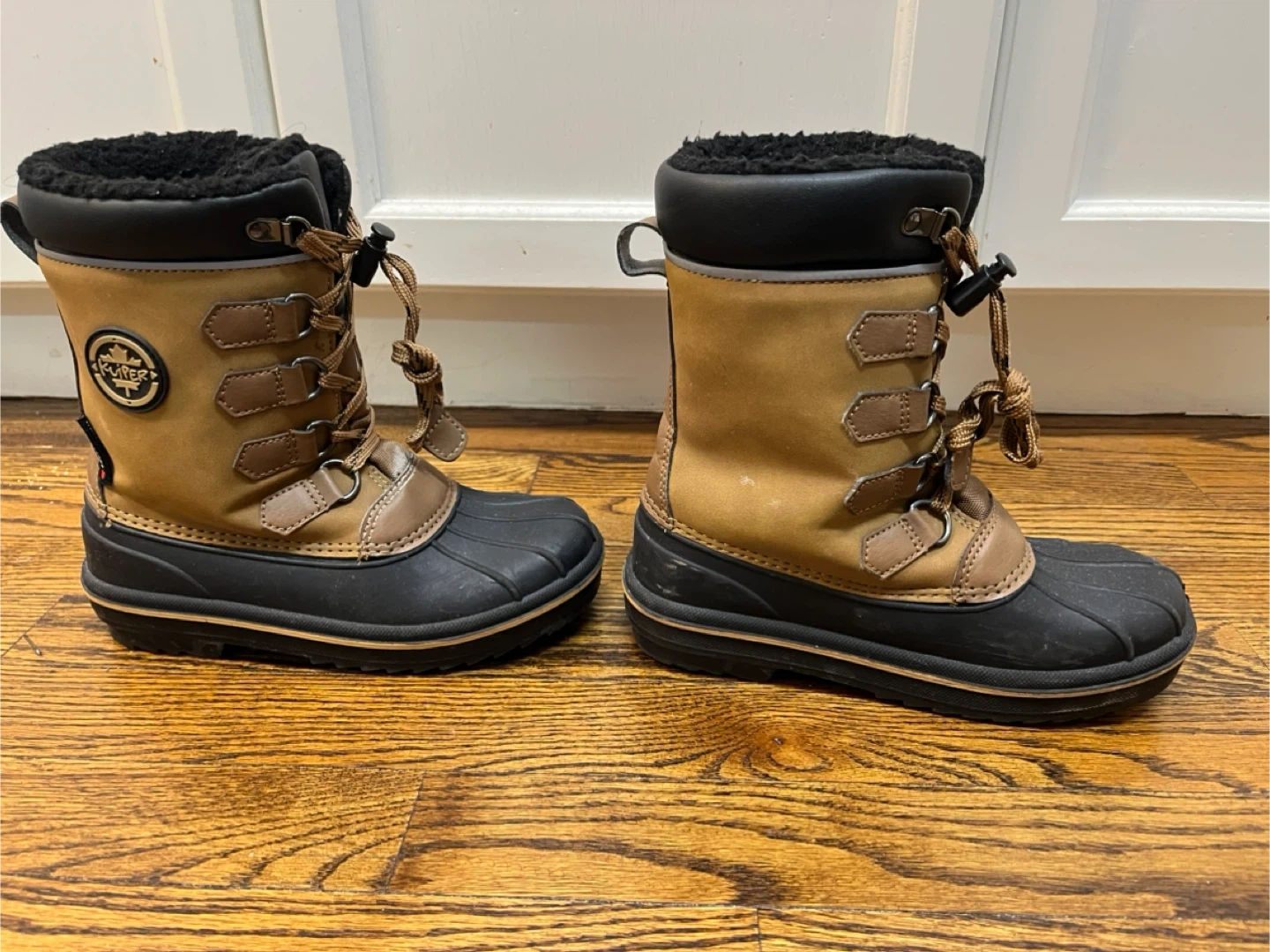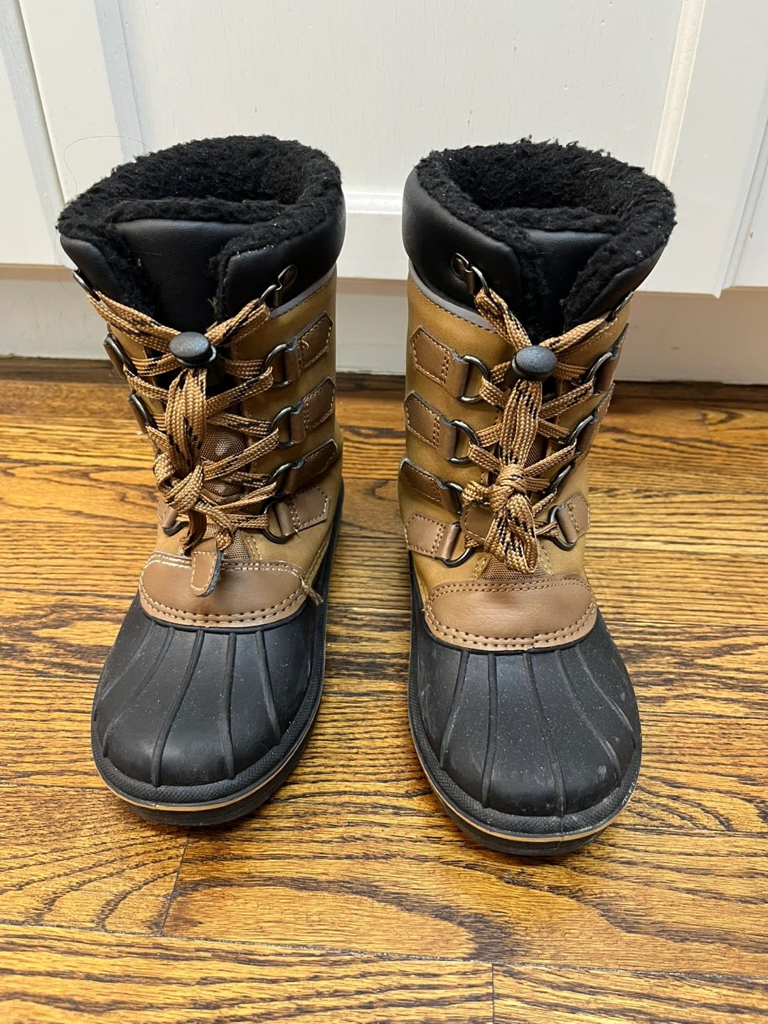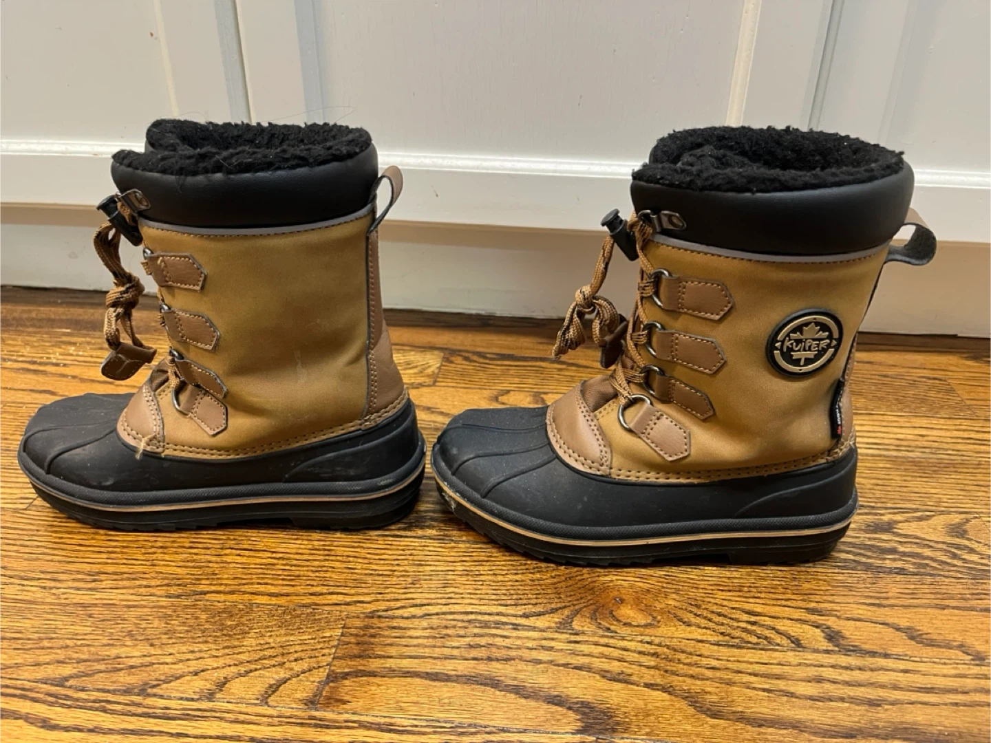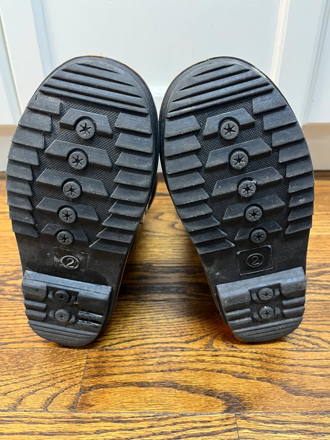 Size 2 winter boots for kids. These are waterproof and insulated with a faux fur lining. Used only a few times. Perfect for keeping little feet warm and dry on snowy days!