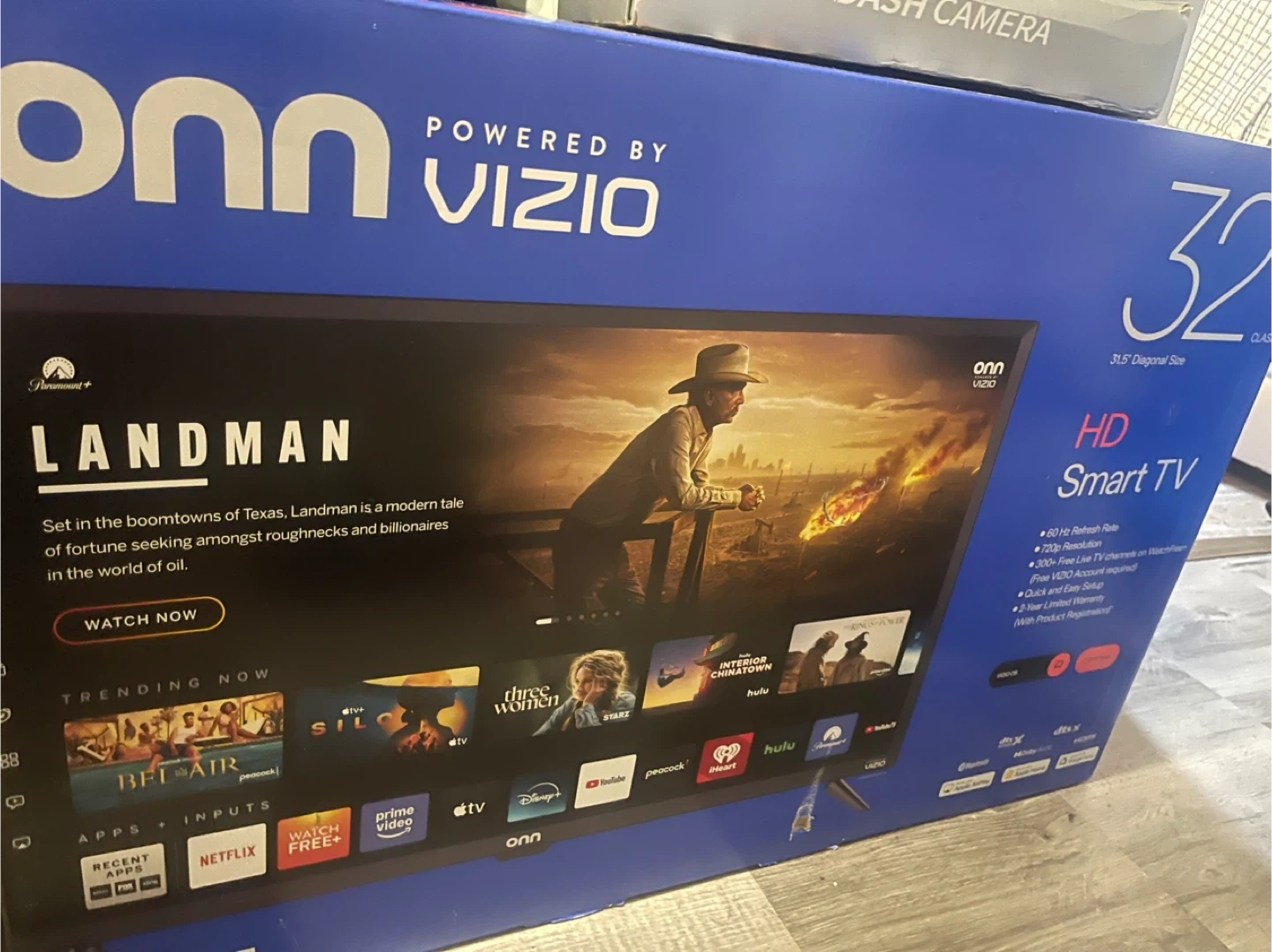 This is a 32-inch HD Smart TV by ONN, powered by VIZIO. It offers a 60 Hz refresh rate and 720p resolution. Includes 300+ free live TV channels and a 2-year limited warranty with product registration.