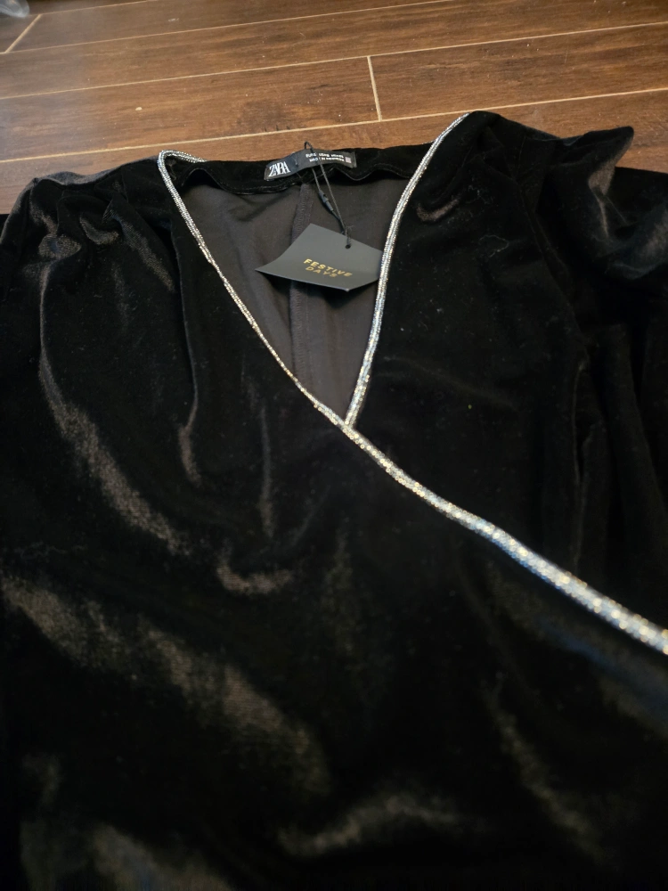 Buy & SellZara Black Velvet BodysuitZara Black Velvet Bodysuit$20Black velvet bodysuit with a V-neck and long sleeves. Features a sparkly trim along the neckline.ConditionNewSizeSBrandZaraWHERE TO MEETCheck LocationView MapSELLERAnnBelgravia20721 reviews1 chats·0 favorites·21 viewsSEND CHAT TO SELLERHi Ann! I’m interested in your listing.Hi Ann! I’m interested in your listing.Get the Karrot app to chatSign In to chat
