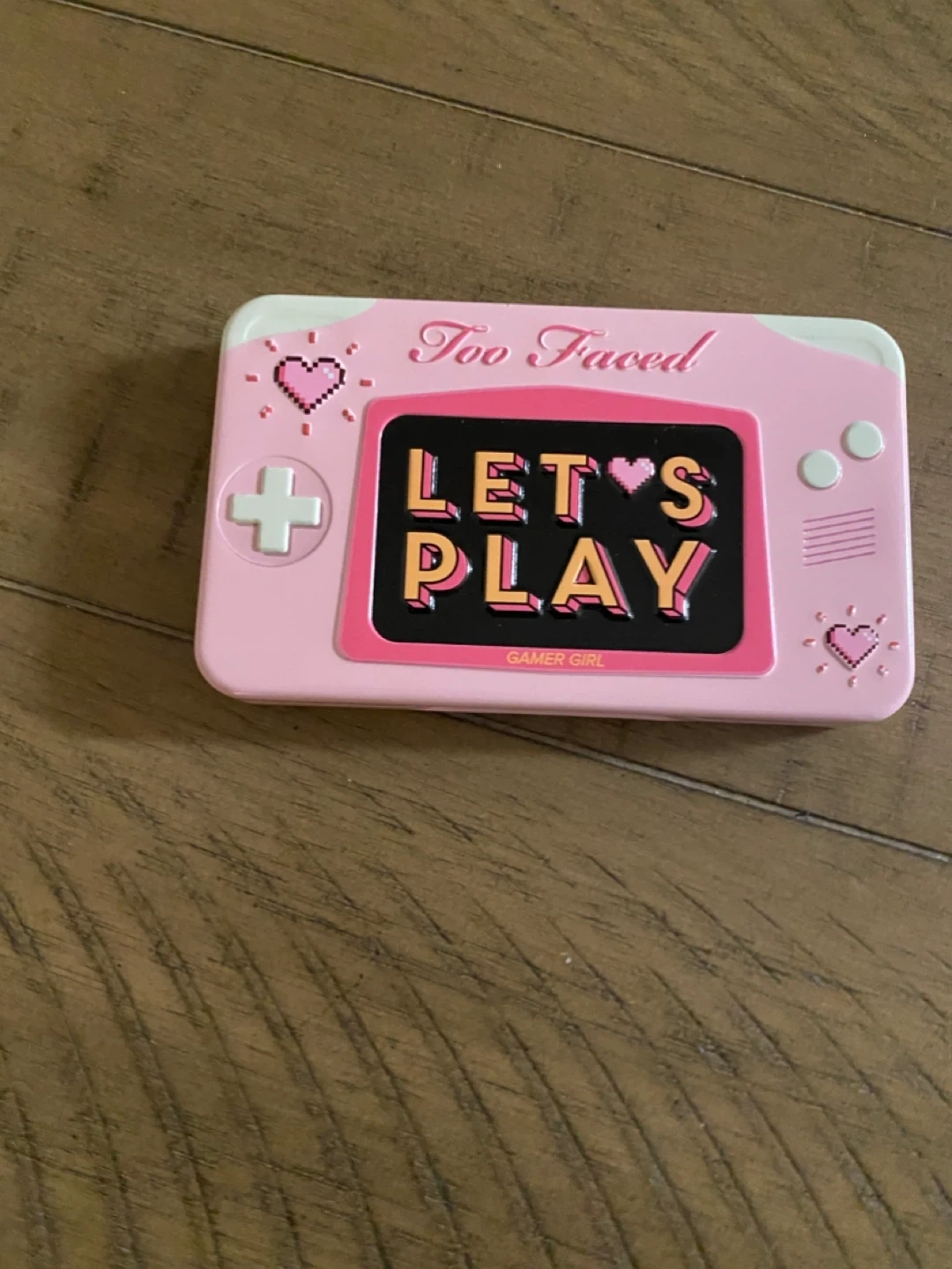 This is the Too Faced Let's Play On-The-Fly Eyeshadow Palette. It smells like bubble gum! The palette contains 8 shades of eyeshadow. It's a great addition to your makeup collection.