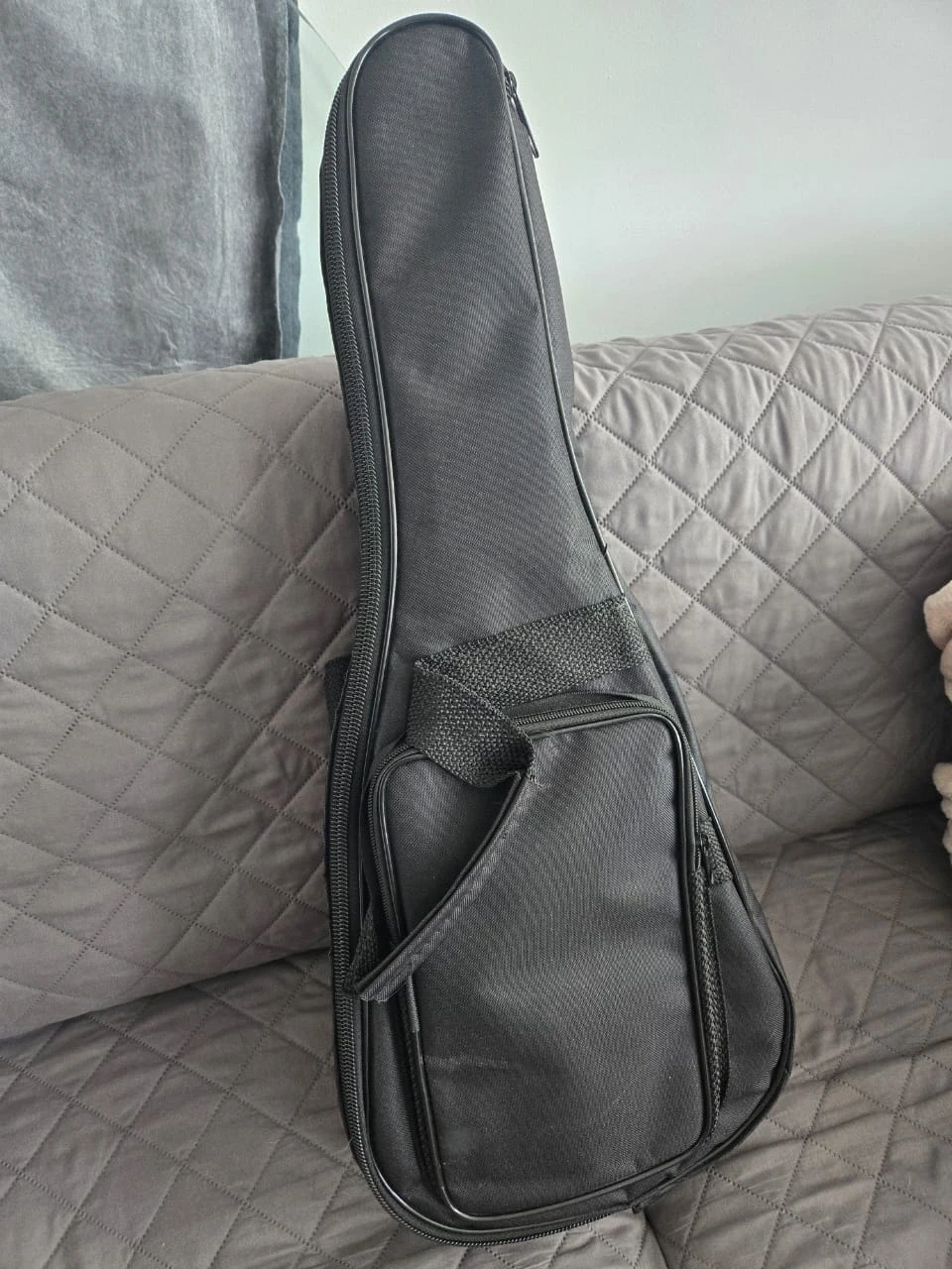 This is a Tok's cavaquinho, it's a fun instrument to learn. It comes with a black gig bag for protection and transport. The cavaquinho is made of wood and has metal tuning pegs.