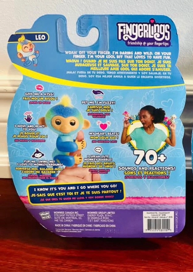 Brand new. Original price is $34.88 plus tax. Asking $12 each. Interactive Baby Monkey Reacts to Touch – 70+ Sounds & Reactions. I have 6 of LEO available. From pet and smoke free home. Pick up at Creditview and Eglinton in Mississauga