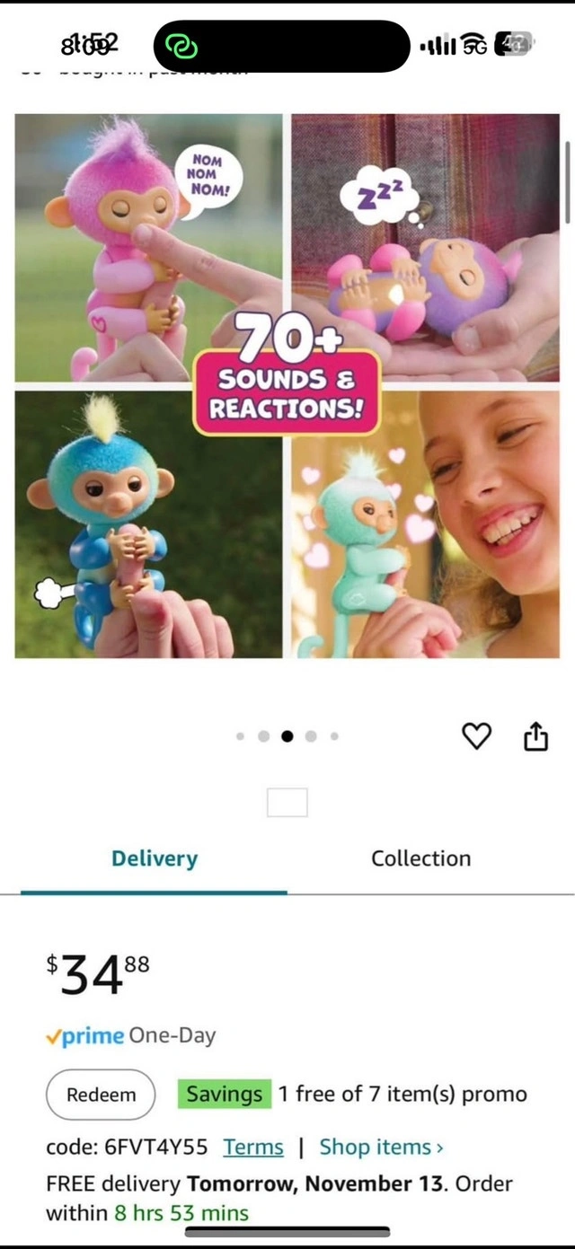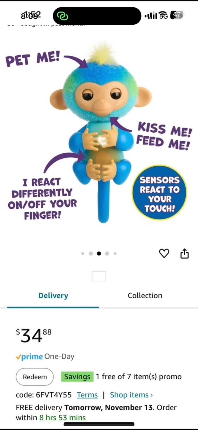 Brand new. Original price is $34.88 plus tax. Asking $12 each. Interactive Baby Monkey Reacts to Touch – 70+ Sounds & Reactions. I have 6 of LEO available. From pet and smoke free home. Pick up at Creditview and Eglinton in Mississauga
