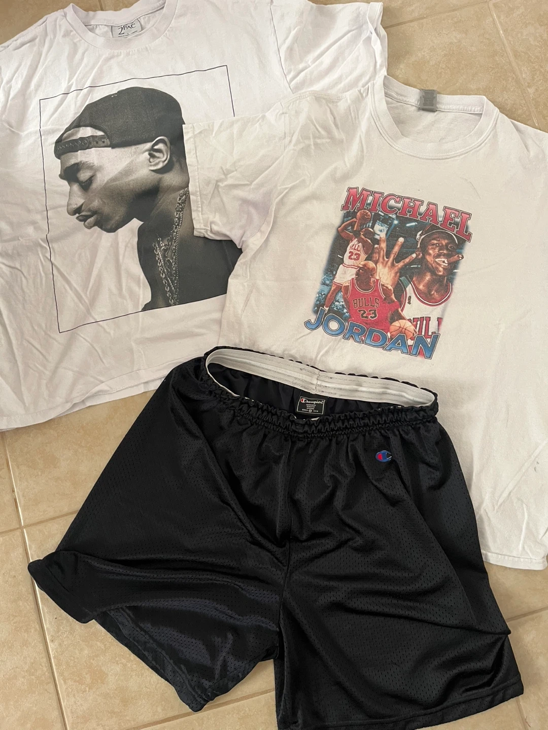 2Pac & Michael Jordan T-Shirts + Champion Shorts (L)