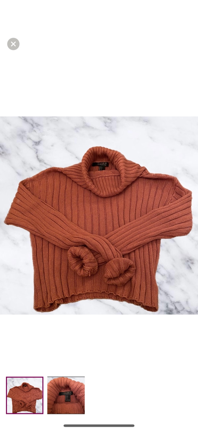 Cozy up in this Forever 21 knit turtleneck sweater! It's a beautiful pink colour, perfect for adding a pop of warmth to your wardrobe. The material is soft and comfy, making it ideal for those chilly days.