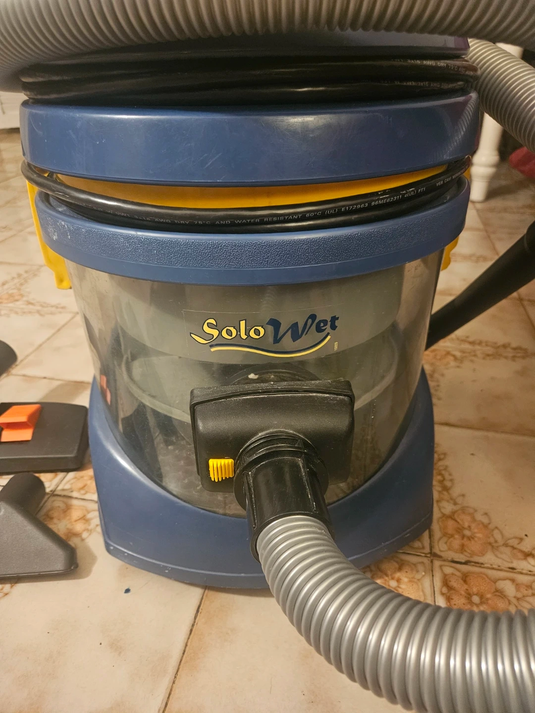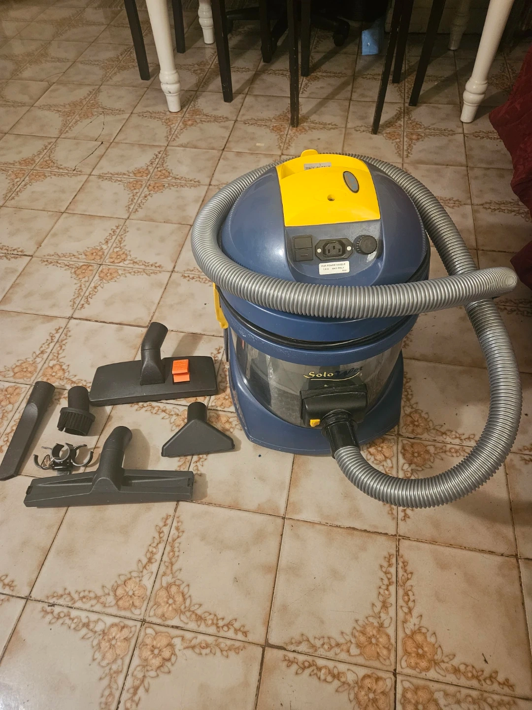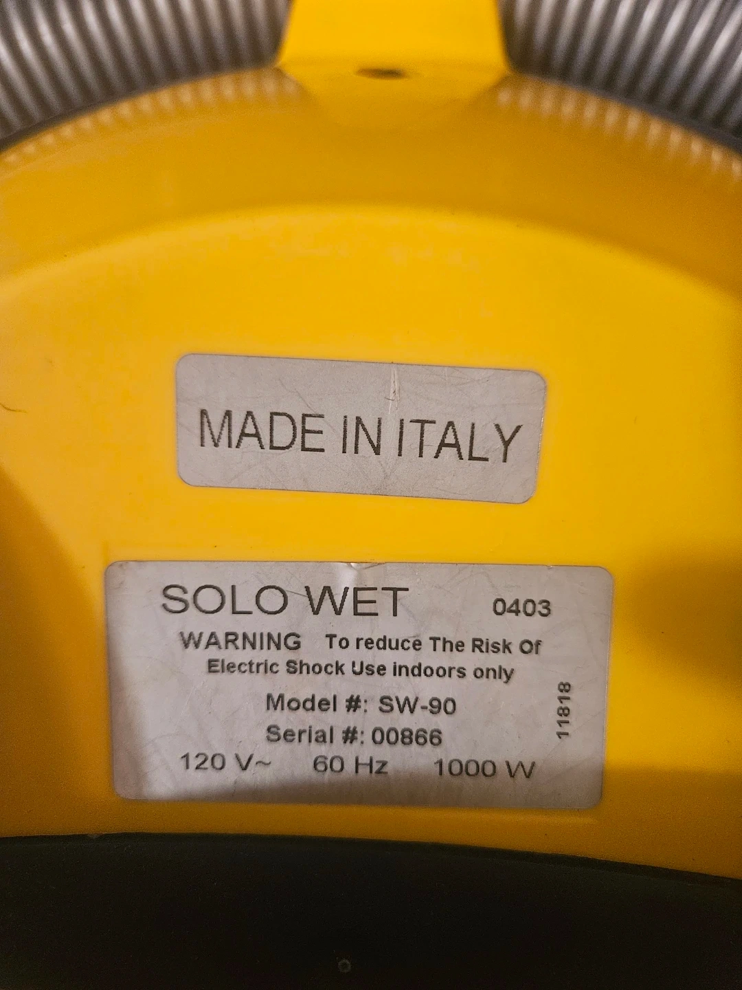 Solo-Wet SW-90 wet/dry vacuum cleaner. Made in Italy. Comes with multiple attachments. 1000W power. 120V.