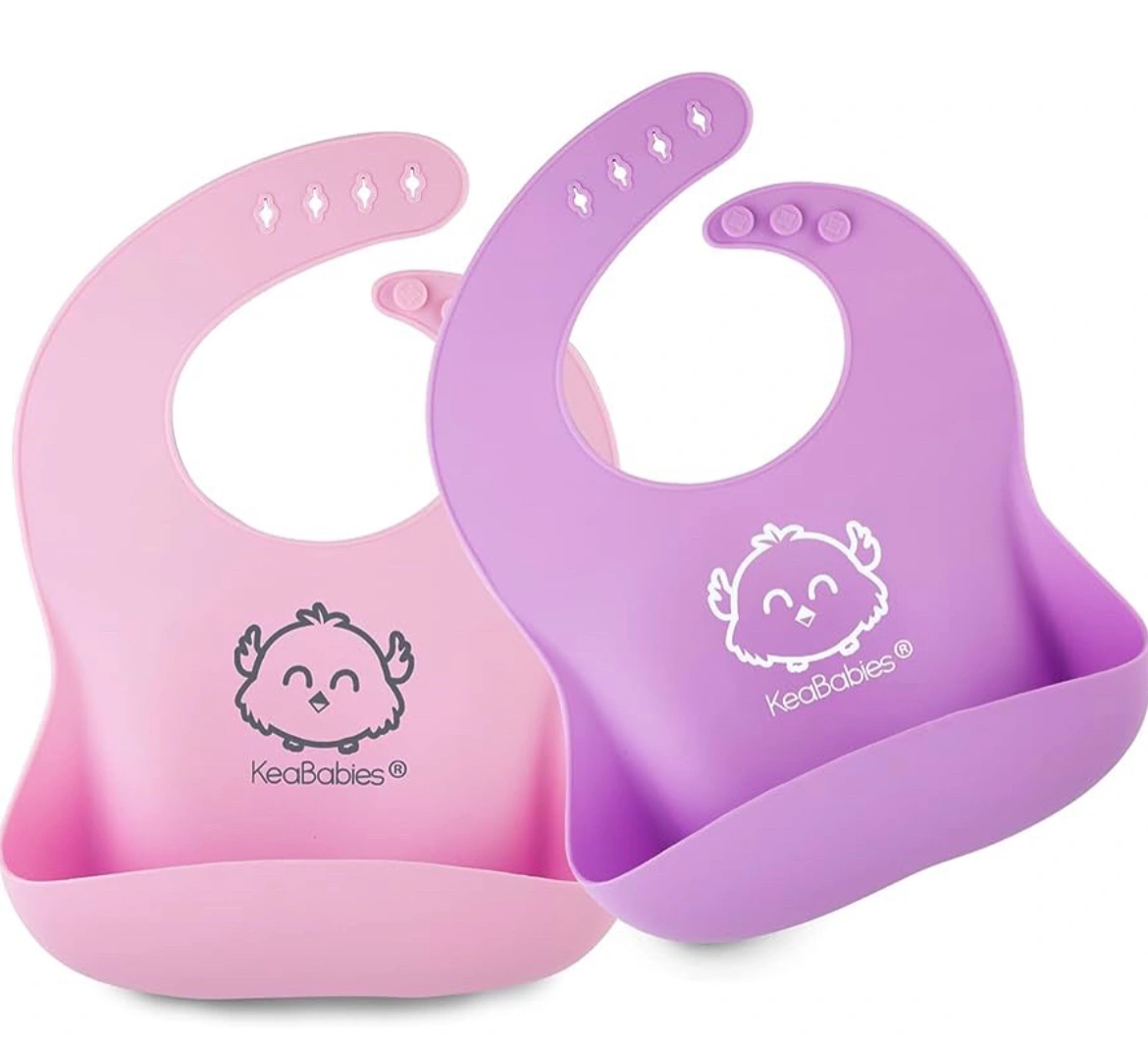 Baby Silicone Bibs - Waterproof, Easy Wipe Silicone Bib for Babies, Toddlers - Baby Feeding Bibs with Large Food Catcher Pocket - Travel Bibs for Baby Girl, Boy - Food Grade BPA Free