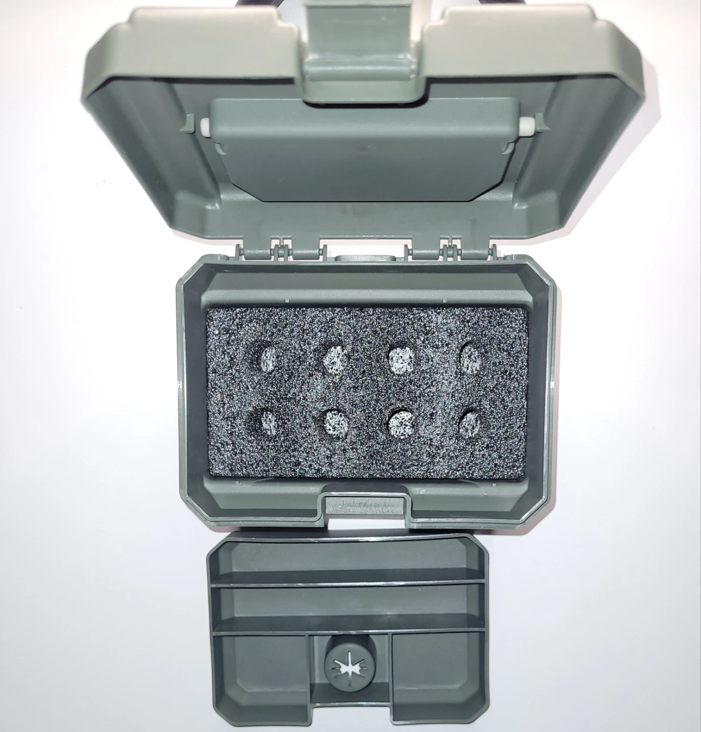 High-density foam insert safely and securely holds up to 8 broadheads of various shapes and sizes in precut holes, preventing movement and damage during transport. The insert is removable if desired.