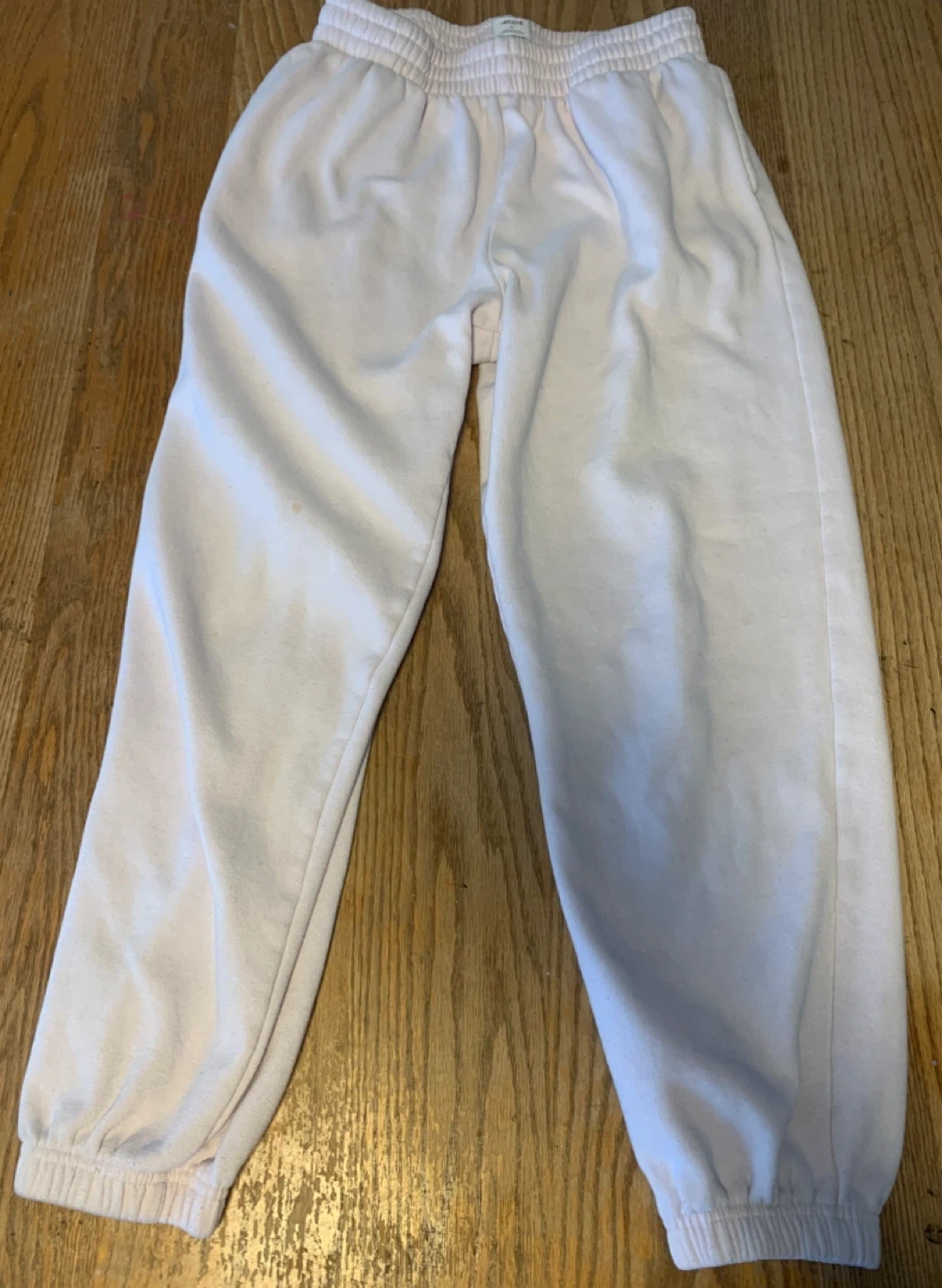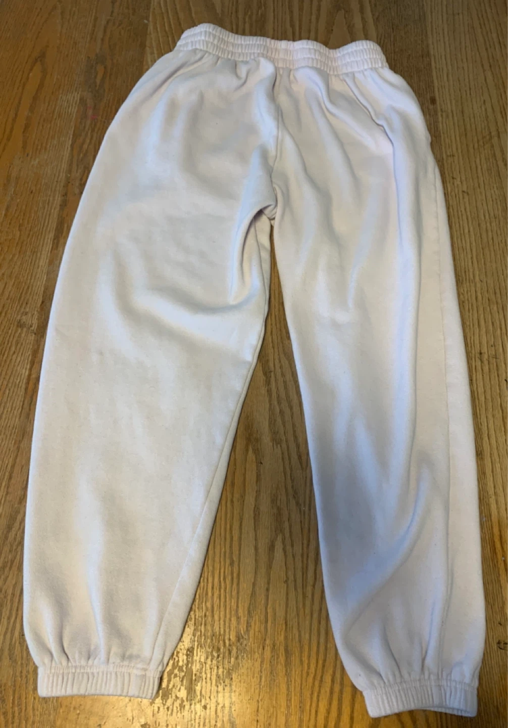 These pants have been loved but have sadly been grown out of, they are soft and perfect for lounging at home or wearing out. Cuffed waistline and ankles.