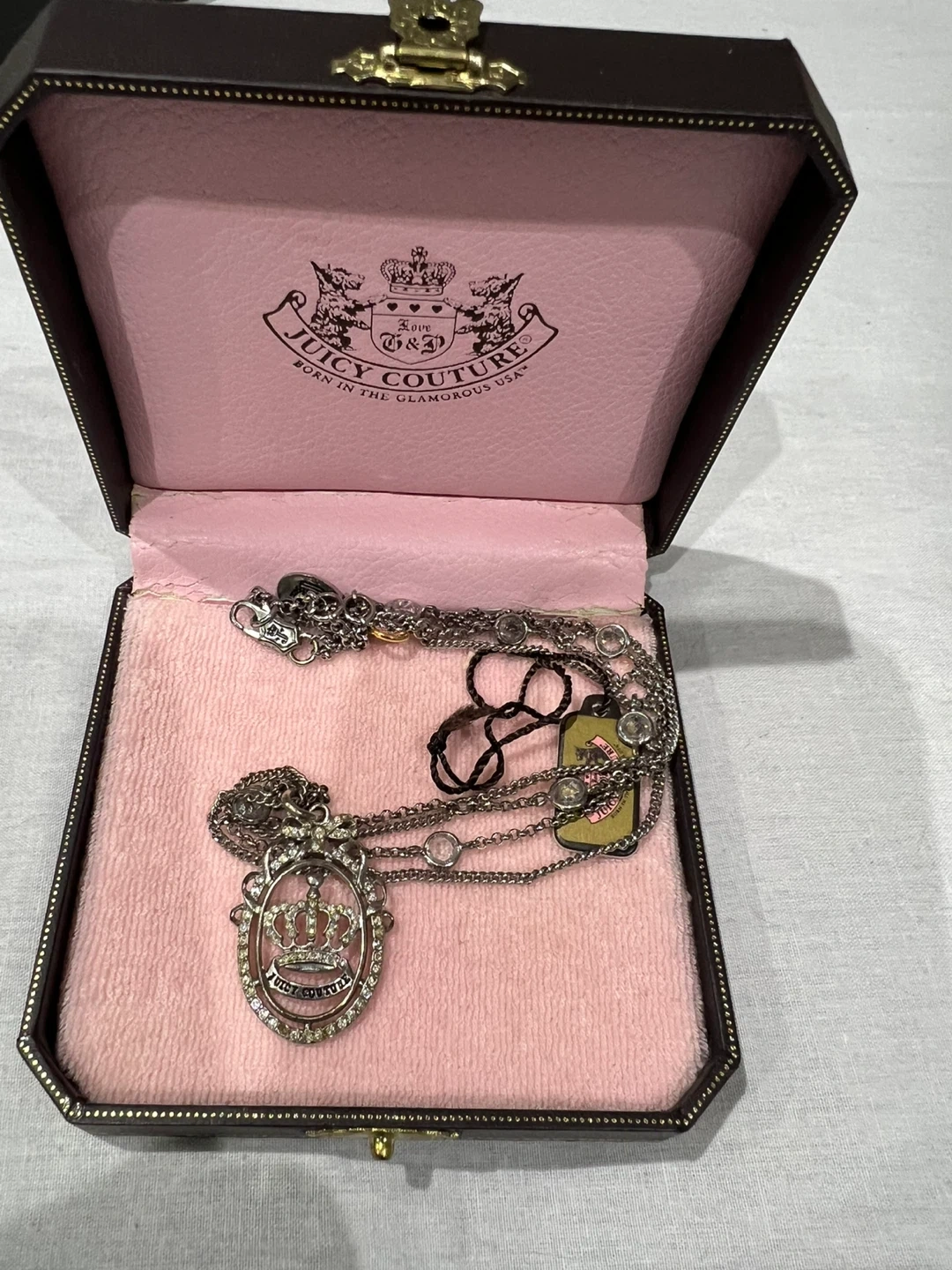 Selling a beautiful Juicy Couture necklace! It features a lovely crown pendant. The necklace comes with its original box, making it perfect for gifting or safekeeping. It's in great condition and ready to add a touch of glamour to your style