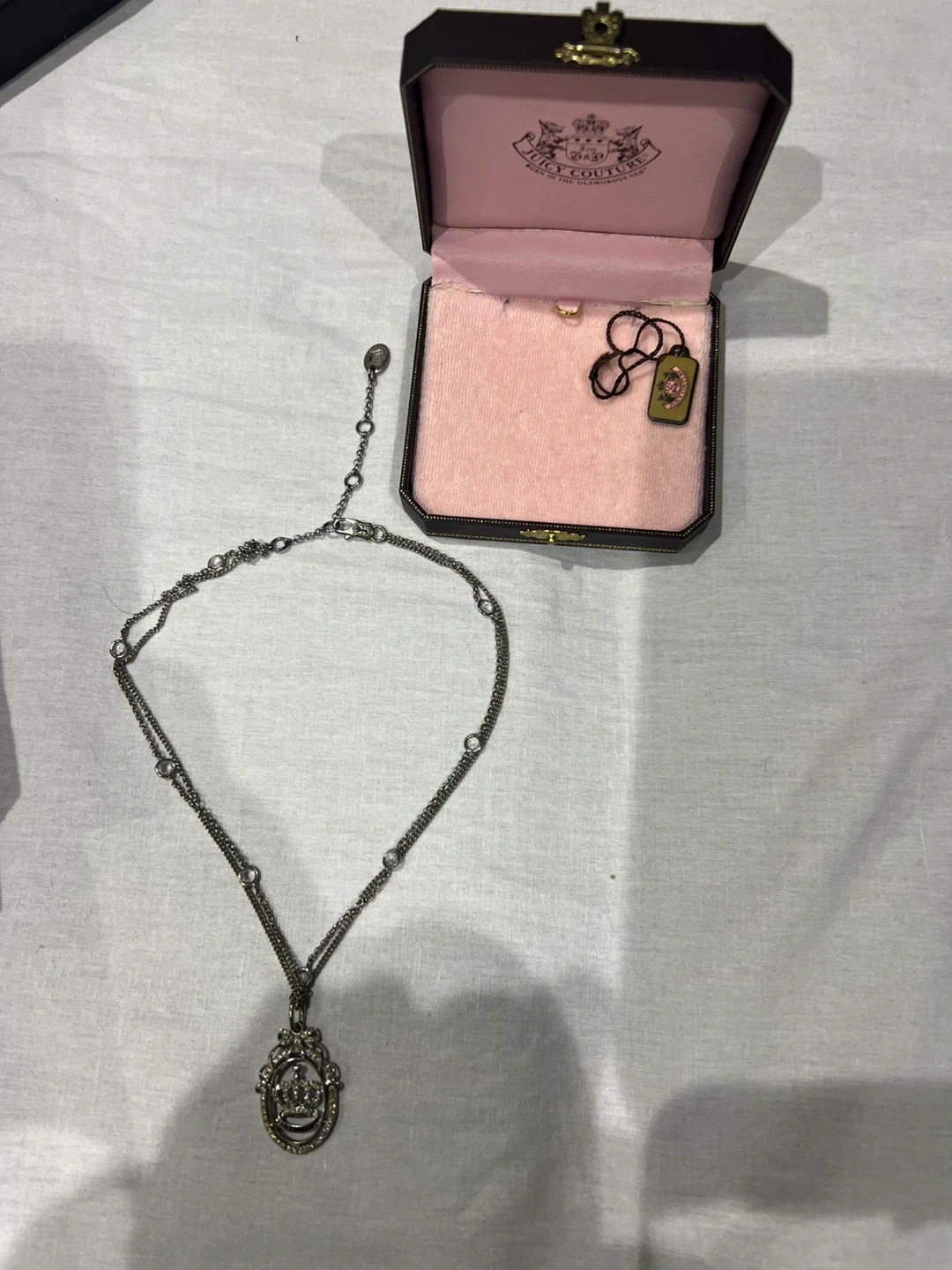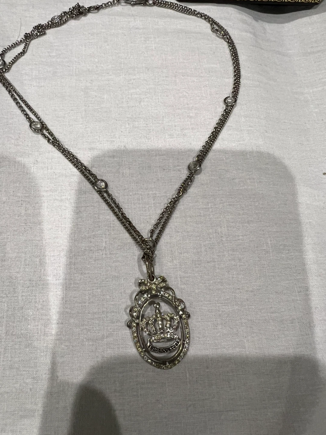 Selling a beautiful Juicy Couture necklace! It features a lovely crown pendant. The necklace comes with its original box, making it perfect for gifting or safekeeping. It's in great condition and ready to add a touch of glamour to your style