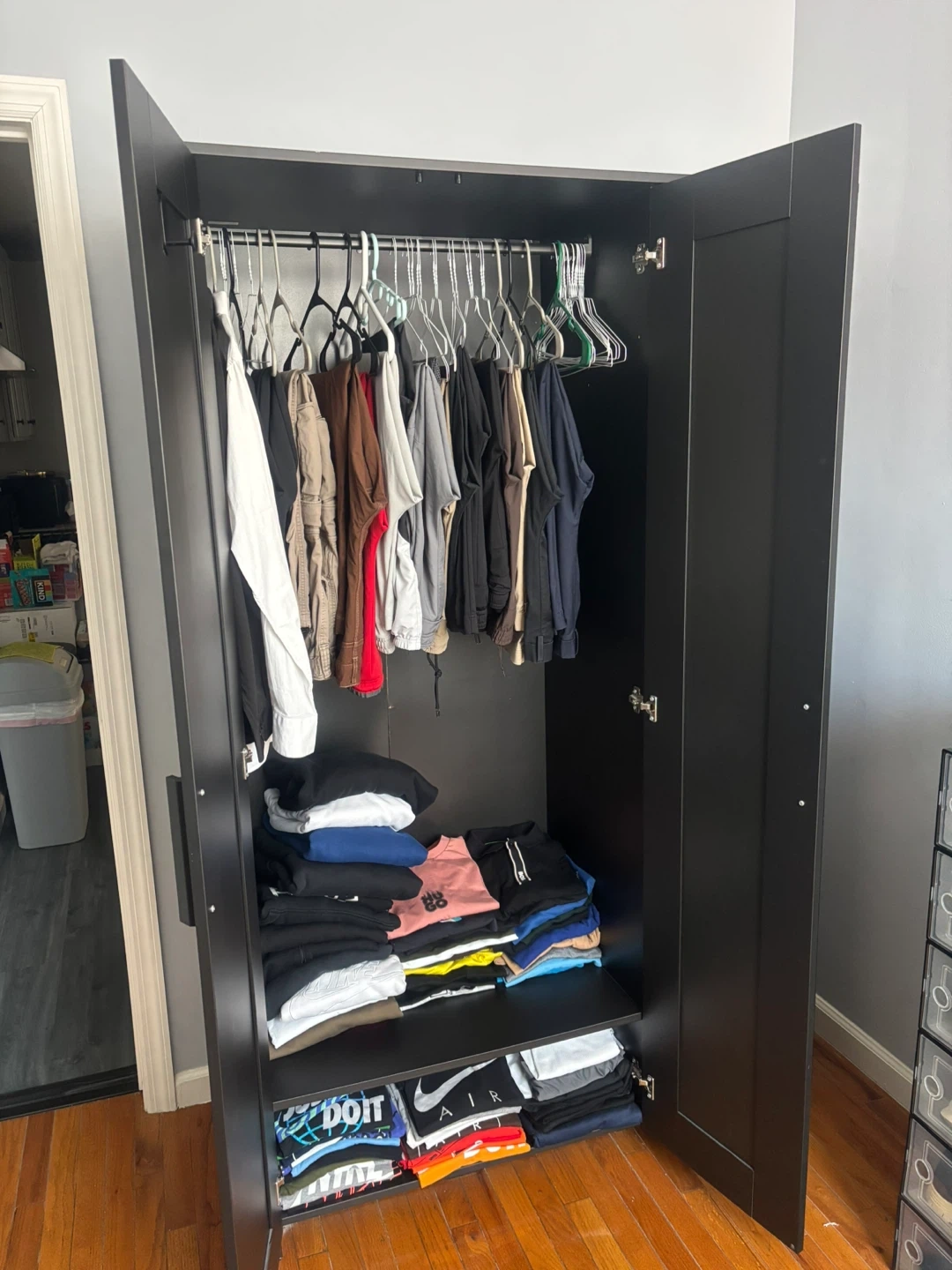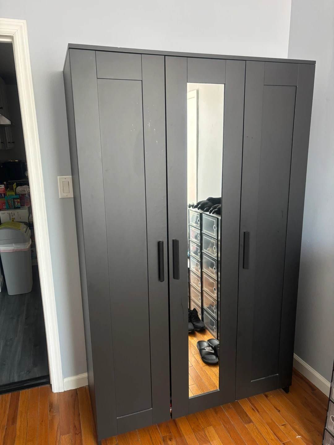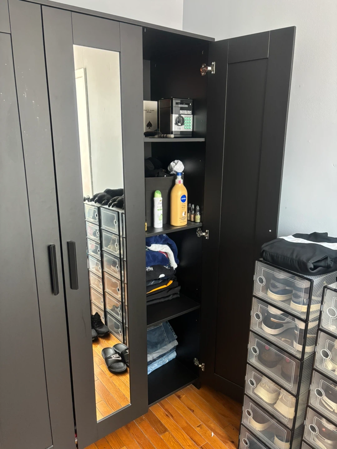 Black wardrobe with mirrored doors