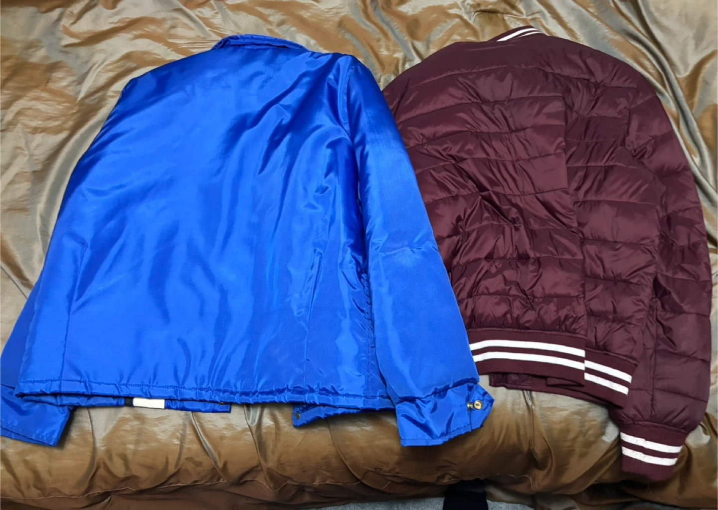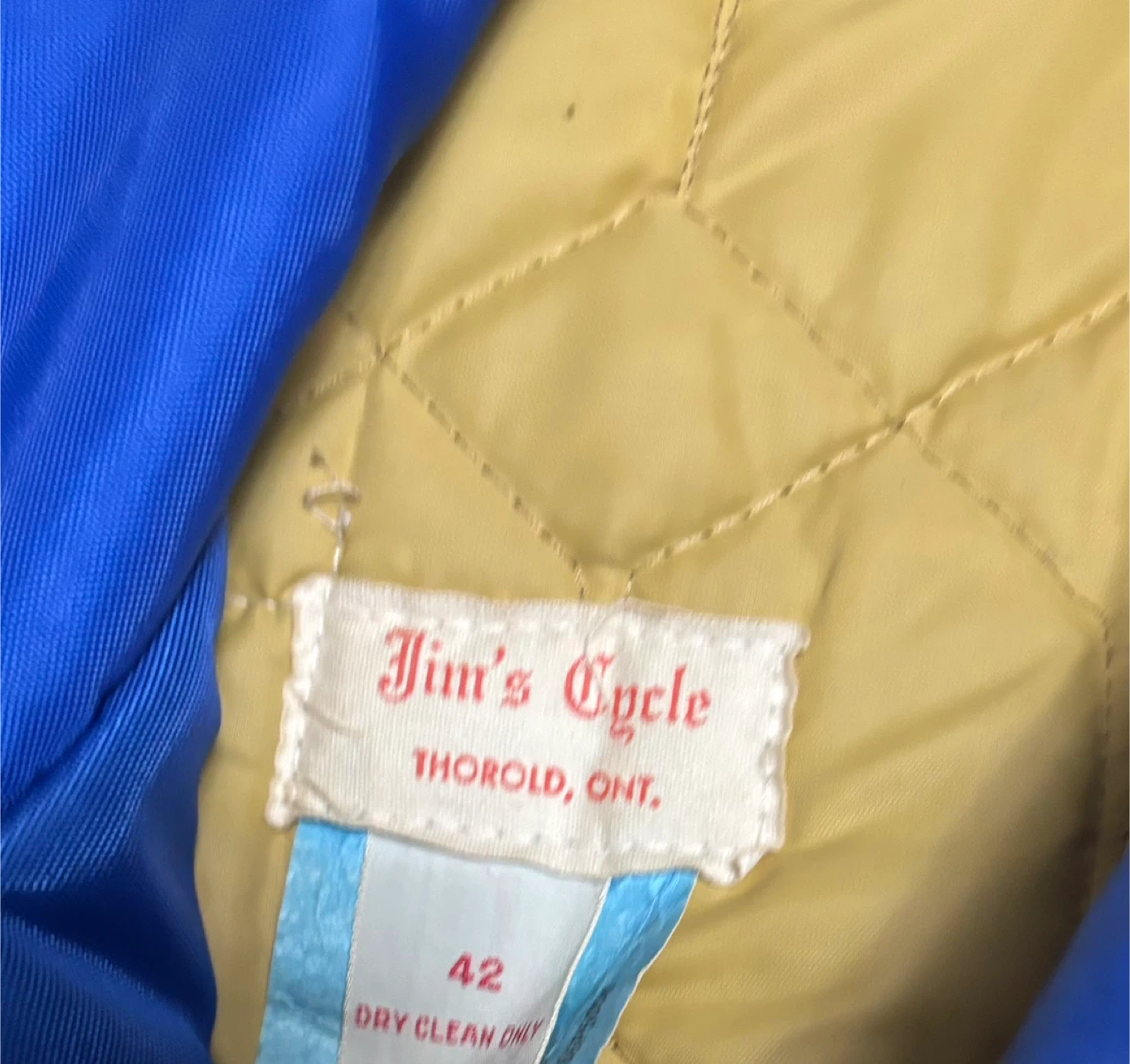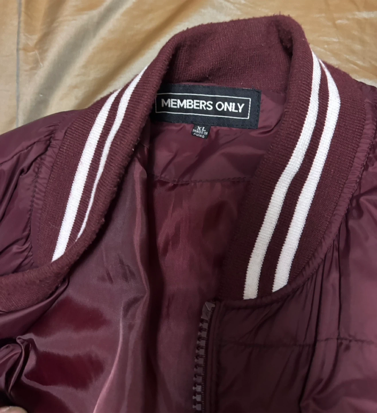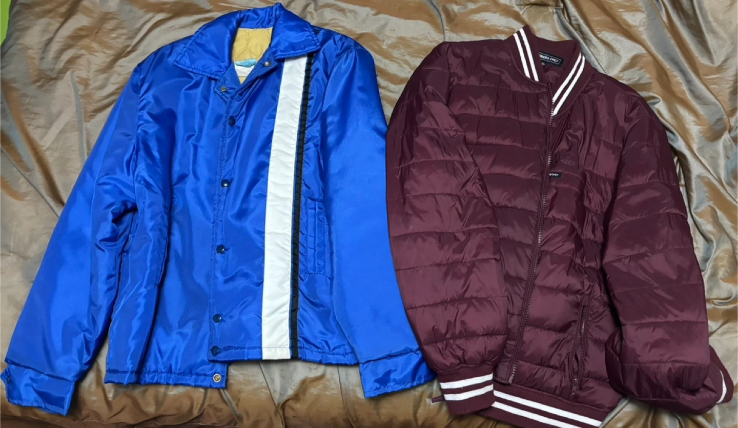 Members Only Maroon Bomber Jacket & Jim's Cycle Blue Jacket