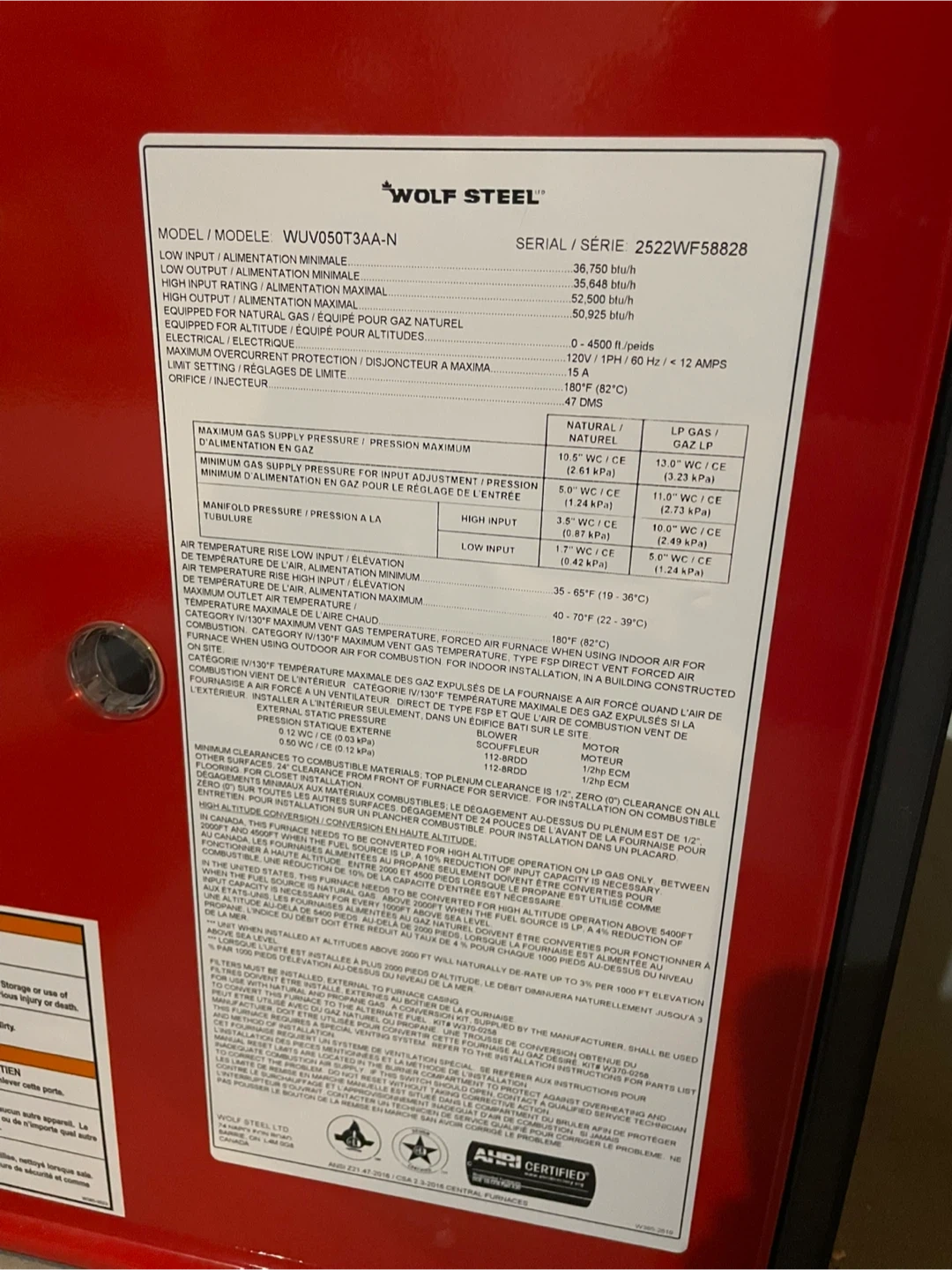 This is a Napoleon Ultimate 9700 Series gas furnace. It's a two-stage high-efficiency condensing furnace. Installation and operating instructions are included.
