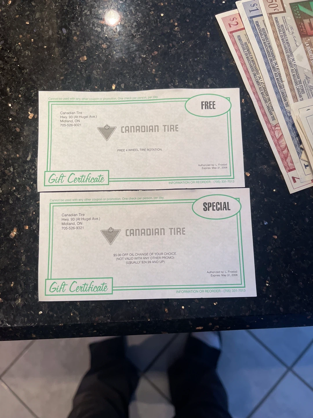 Canadian Tire Money & Gift Certificates