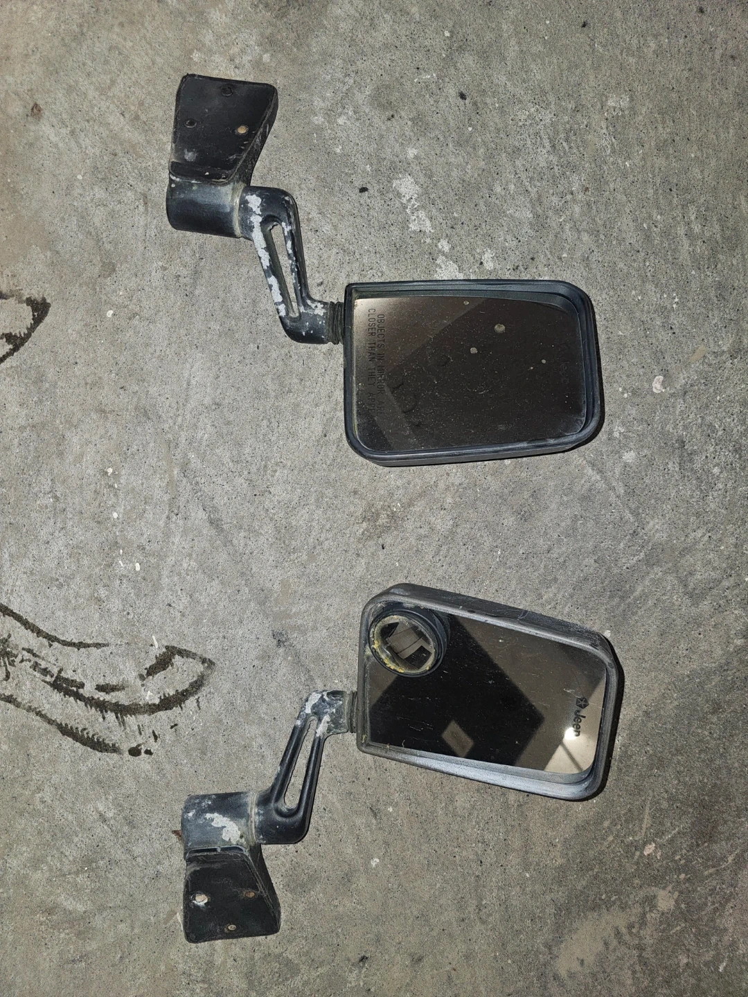 Includes both doors, side mirrors, and door hinges. Glass is intact and in good condition, with only minimal rust around the window frames.