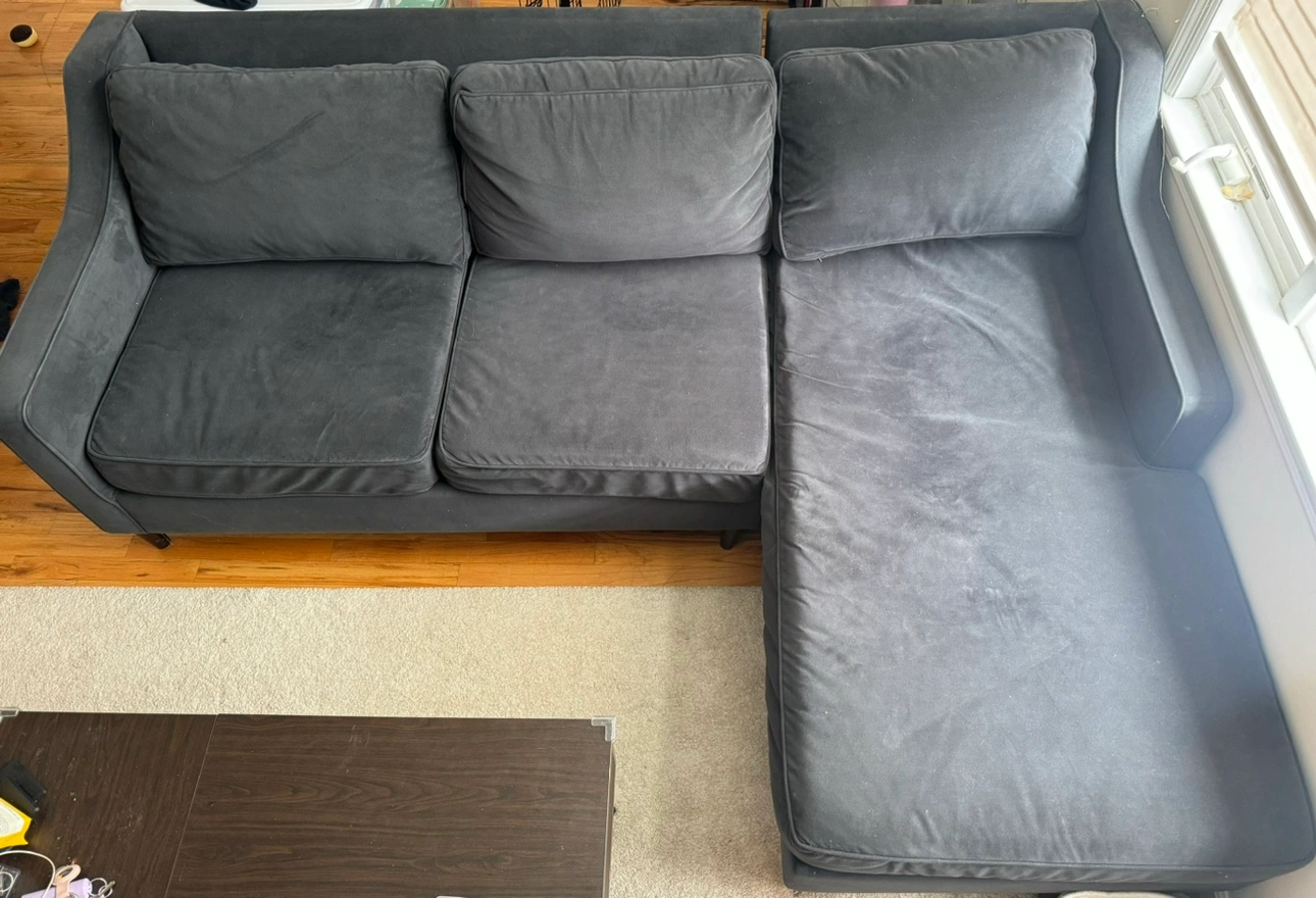 Used for about a year, still in great condition. No marks, stains, or tears. Cushion covers are removable and washable.