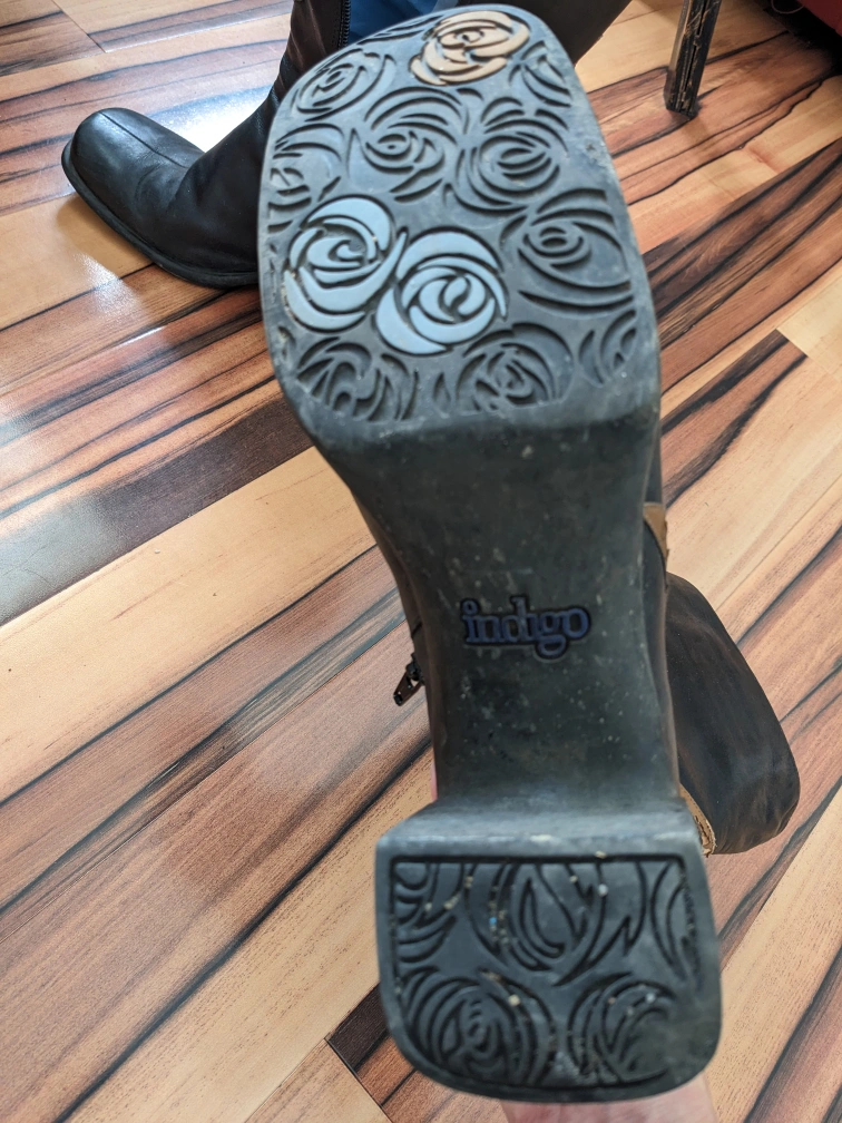 Free boots. The design is coming off, as seen on the pictures, but otherwise in good condition. Very comfortable. Size 8.5/9