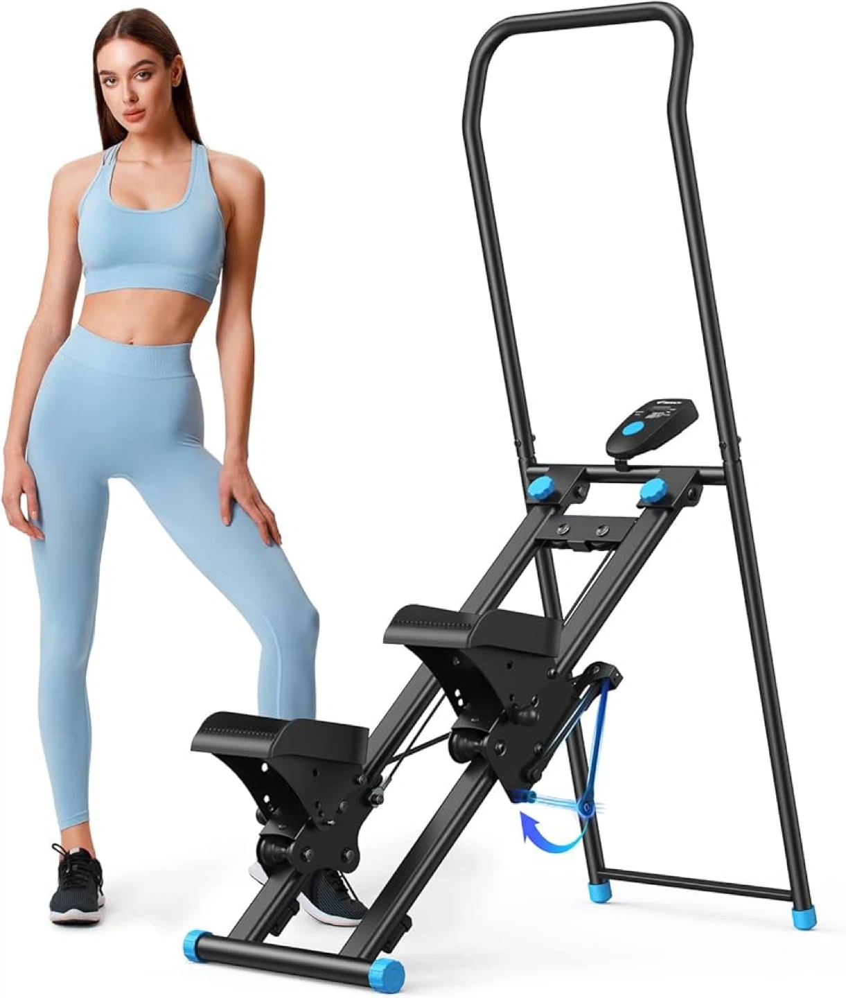 MERACH Stairmaster for Home Gym Exercise, New Version Vertical Stair Climber for Full-Body Workout, Compact Folding Stair Stepper with Adjustable Resistance& Pedals, Extended Step Range