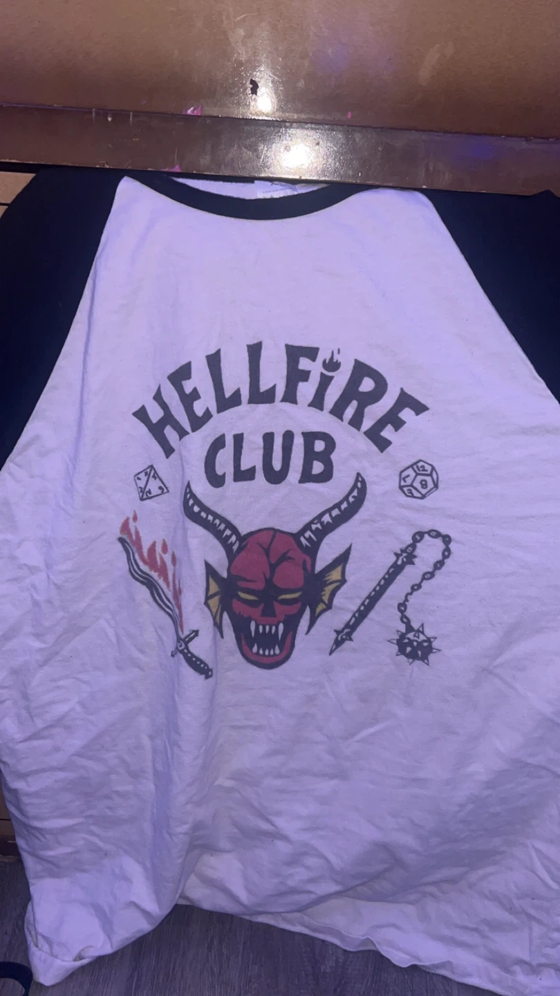 This long-sleeved raglan t-shirt features the iconic Hellfire Club logo. It's made of a soft cotton blend for comfort.