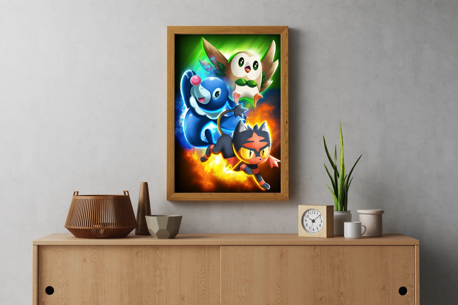 Pokemon Sun and Moon, Rowlet Litten Popplio, artwork by me! 12x18 inches, semi gloss paper. I have a lot more anime and comic poster on sale. Check out my full listing. For more of my work check out: https://www.deviantart.com/genghiskwan