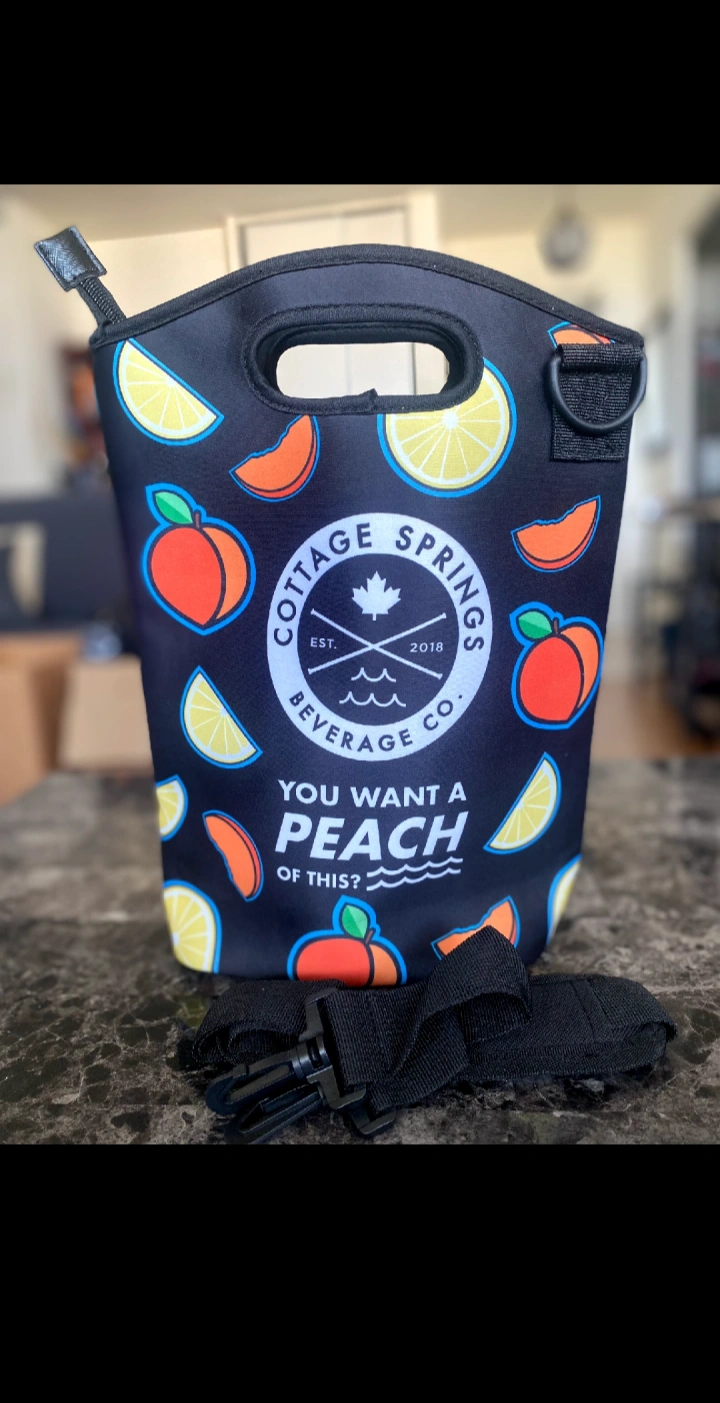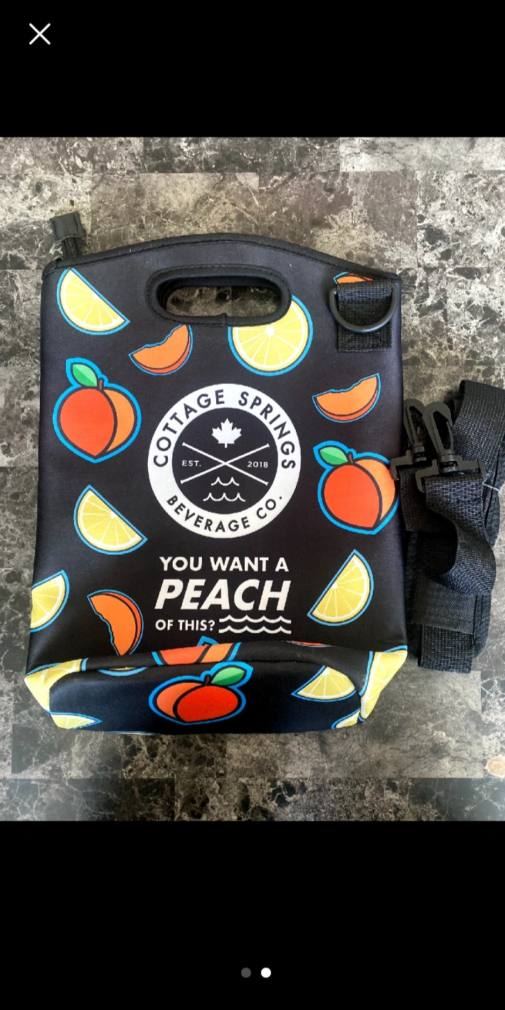 This Cottage Springs Beverage Co. insulated lunch or drink bag, It comes with a detachable shoulder strap for easy carrying. It's perfect for keeping your lunch or drinks cool.