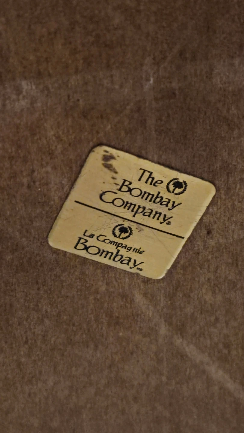 Brand tag on the underside confirms authenticity: “The Bombay Company” with the palm tree logo and the bilingual “La Compagnie Bombay” marking.