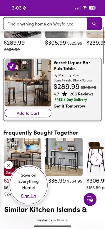Buy & SellVerret Liquor Bar Pub Table by Mercury RowVerret Liquor Bar Pub Table by Mercury Row$200Selling a Verret Liquor Bar Pub Table by Mercury Row. The base finish is black/brown. Originally bought for $289.99. Great for small spacesWHERE TO MEETCheck LocationView MapSELLERverifiedSLChurch Yonge Corridor22523 reviews0 chats·0 favorites·4 viewsSEND CHAT TO SELLERHi SL! I’m interested in your listing.Hi SL! I’m interested in your listing.Get the Karrot app to chatSign In to chat
