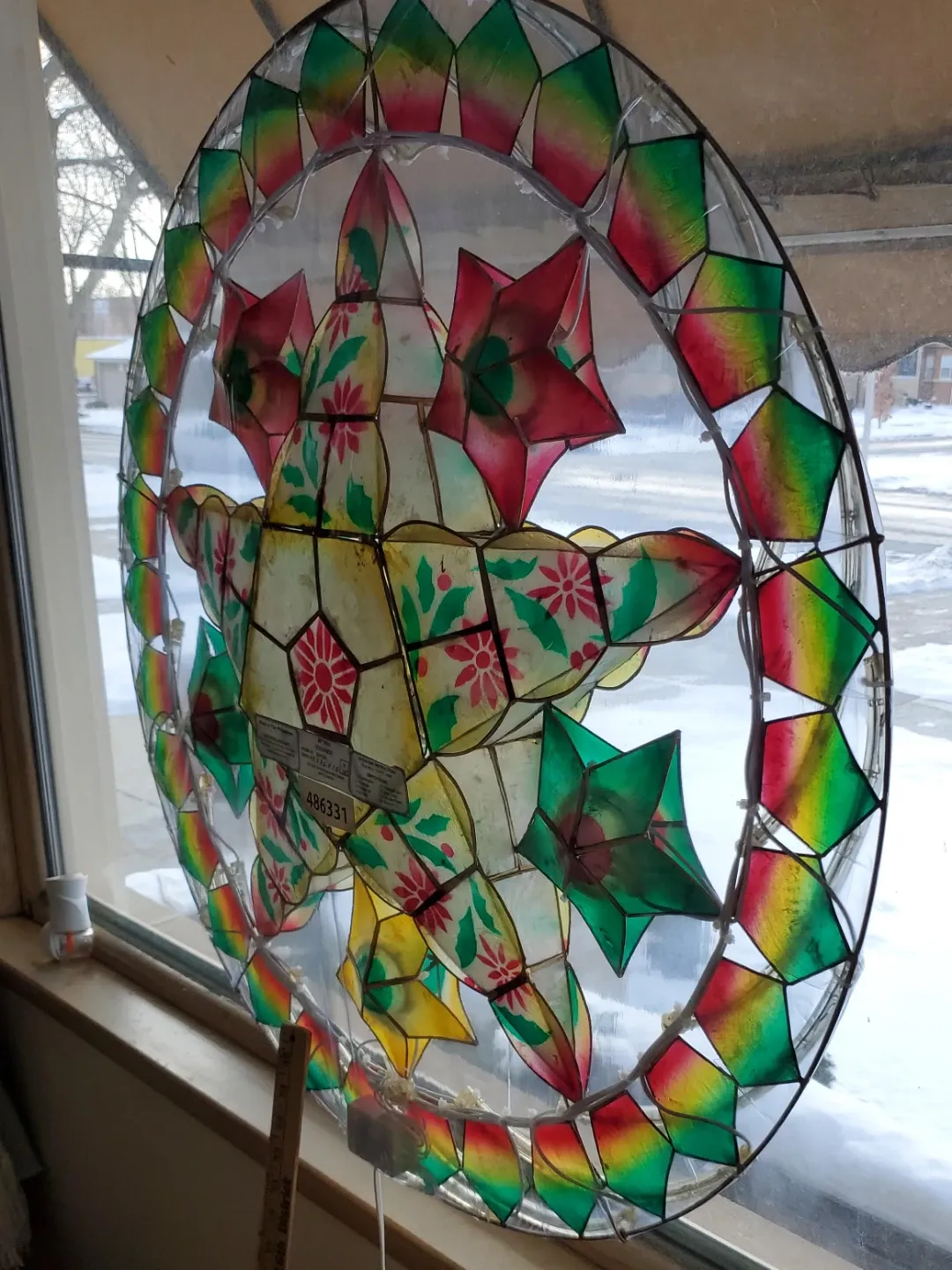 This parol Christmas lantern is handmade with a colorful design. It has a traditional star shape with floral accents. Includes string lights for illumination. It has 8 automatic different light settings that's very attractive and eye catching on your window display.