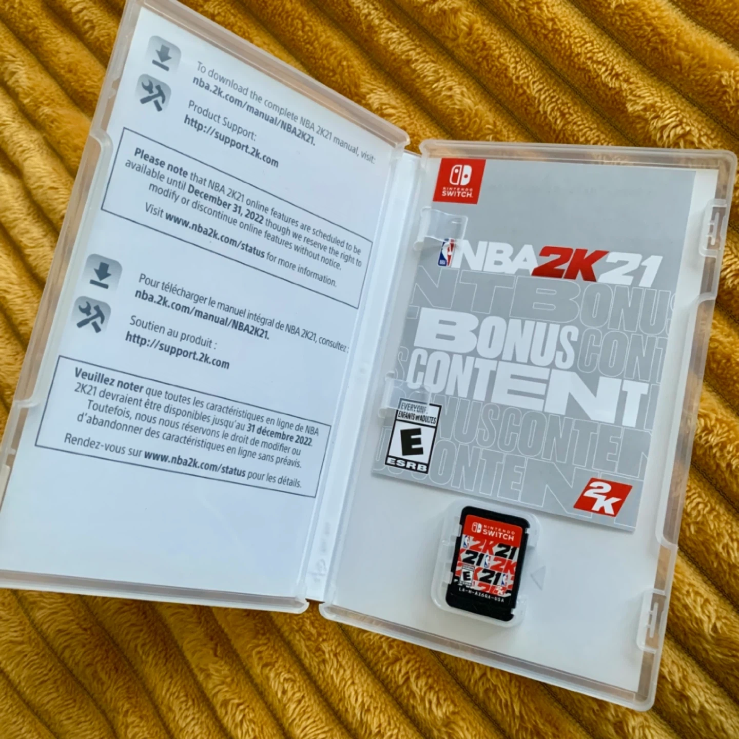 This is the NBA 2K21 game for Nintendo Switch. It features engaging gameplay and allows for player customization.