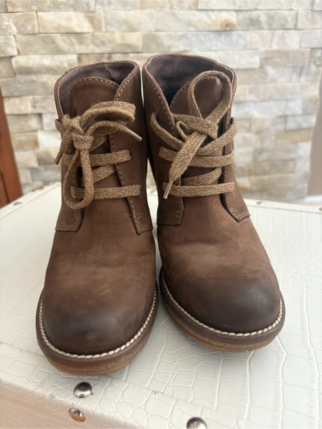 Stylish Browns suede ankle boots with a lace-up front and a block heel. Size 37