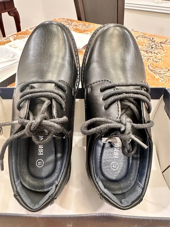 Size 11. These boys' Oxfords run slightly small, so consider sizing up for a comfier fit. Featuring a smooth PU upper and a lace-up closure, these classic Oxford shoes are easy to clean and keep him looking smart for any occasion. The cotton-lined heel and tongue provide extra padding for a comfortable fit. Designed with memory foam in the heel of the insole for cushioning, and a durable TPR outsole. Perfect for birthday parties, church events, or graduation ceremonies. Feel free to message if you have any questions!