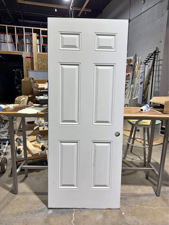 White interior door in good condition. Size: 32” wide x 79 1/4” tall. Great candidate for repainting (paint chips present). Pre-drilled for handle. Feel free to message if you have any questions!