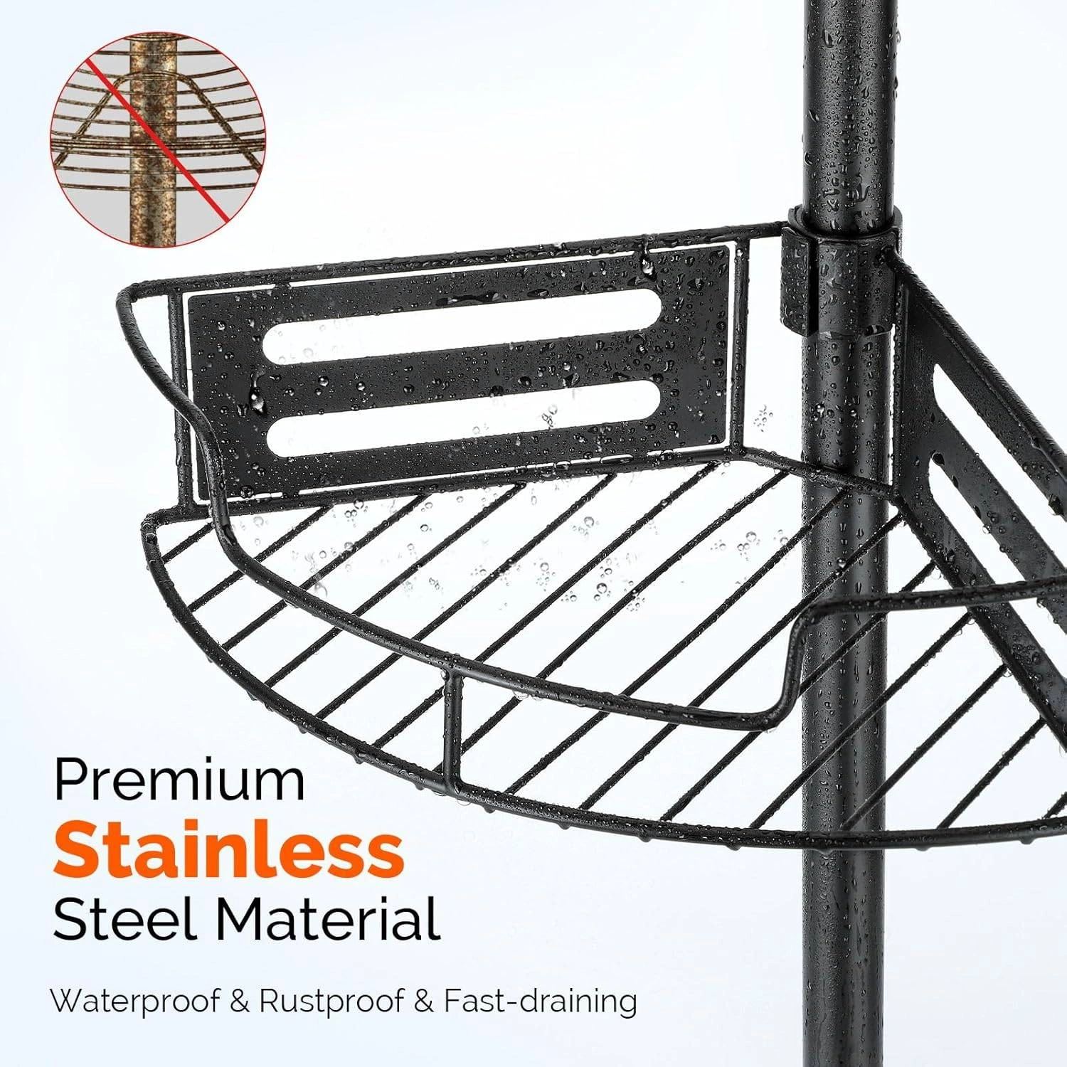 This tension corner shower caddy is a great way to organize your shower space. It's made of premium stainless steel material, so it's waterproof and rustproof. The fast-draining design helps to keep your items dry and clean