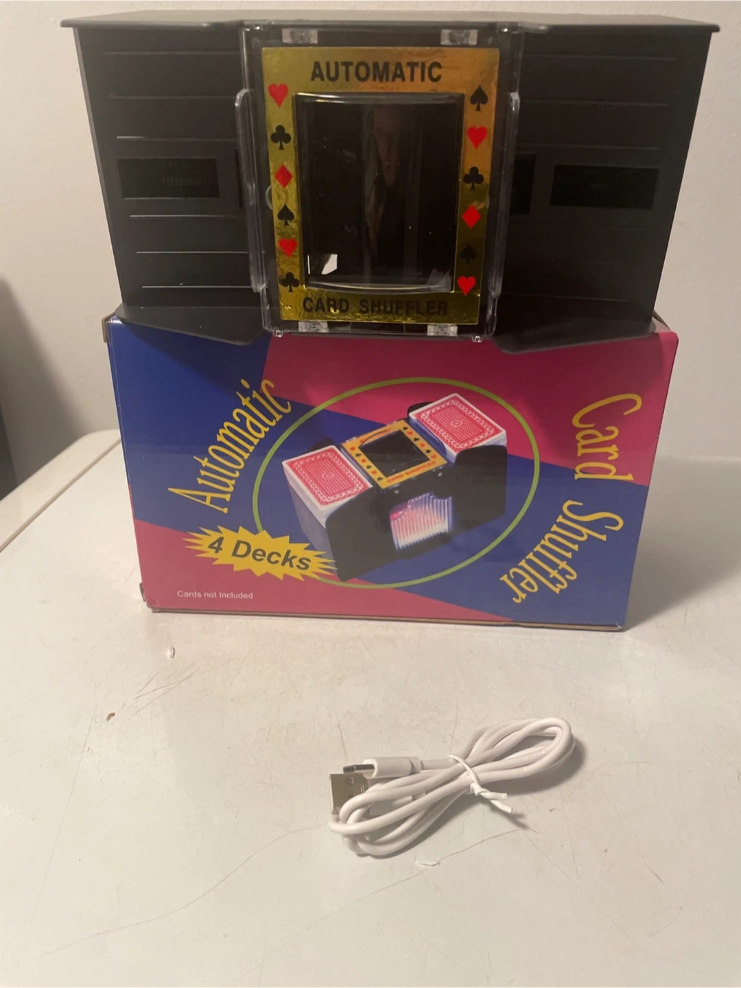 Buy & SellAutomatic Card Shuffler - 4 DecksAutomatic Card Shuffler - 4 Decks$15Automatic card shuffler for up to 4 decks of cards. It comes with a USB charging cable. Cards are not included.ConditionNewWHERE TO MEETCheck LocationView MapSELLERKevinDynes00 reviews0 chats·0 favorites·4 viewsSEND CHAT TO SELLERHi Kevin! I’m interested in your listing.Hi Kevin! I’m interested in your listing.Get the Karrot app to chatSign In to chat