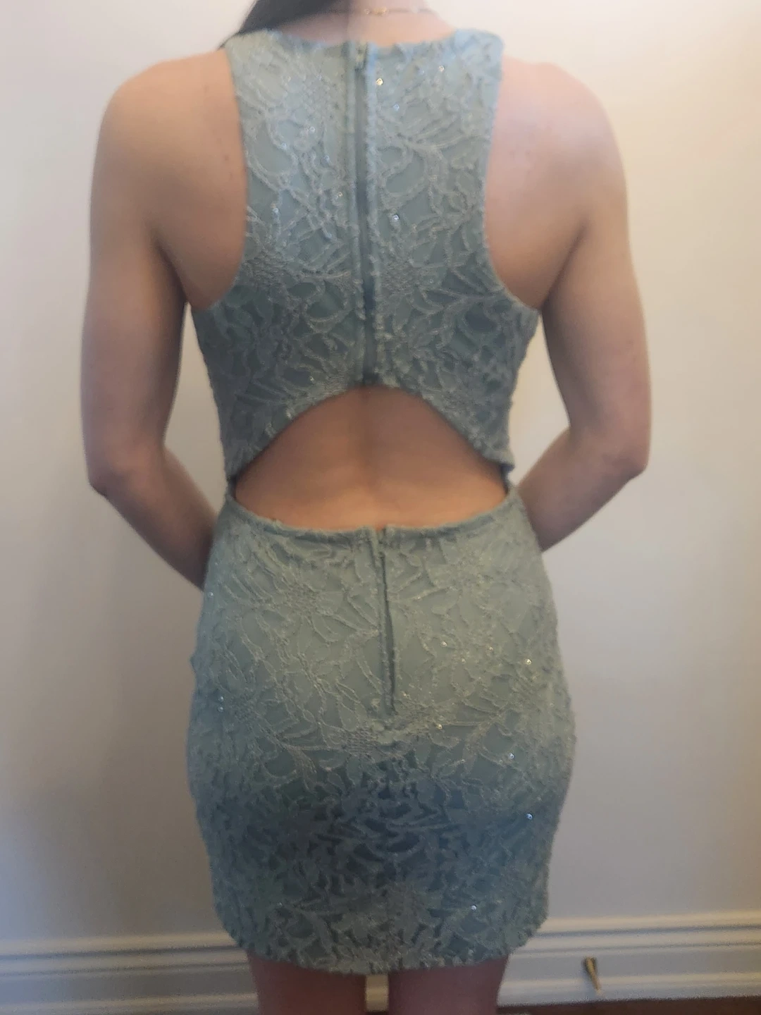 Light Blue Lace Bodycon Dress with Cutout Back