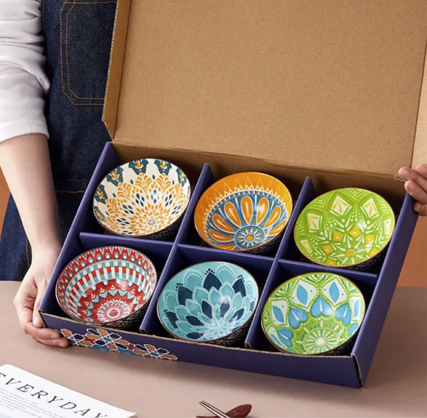 Set of 6 Ceramic Bowls with Assorted Patterns