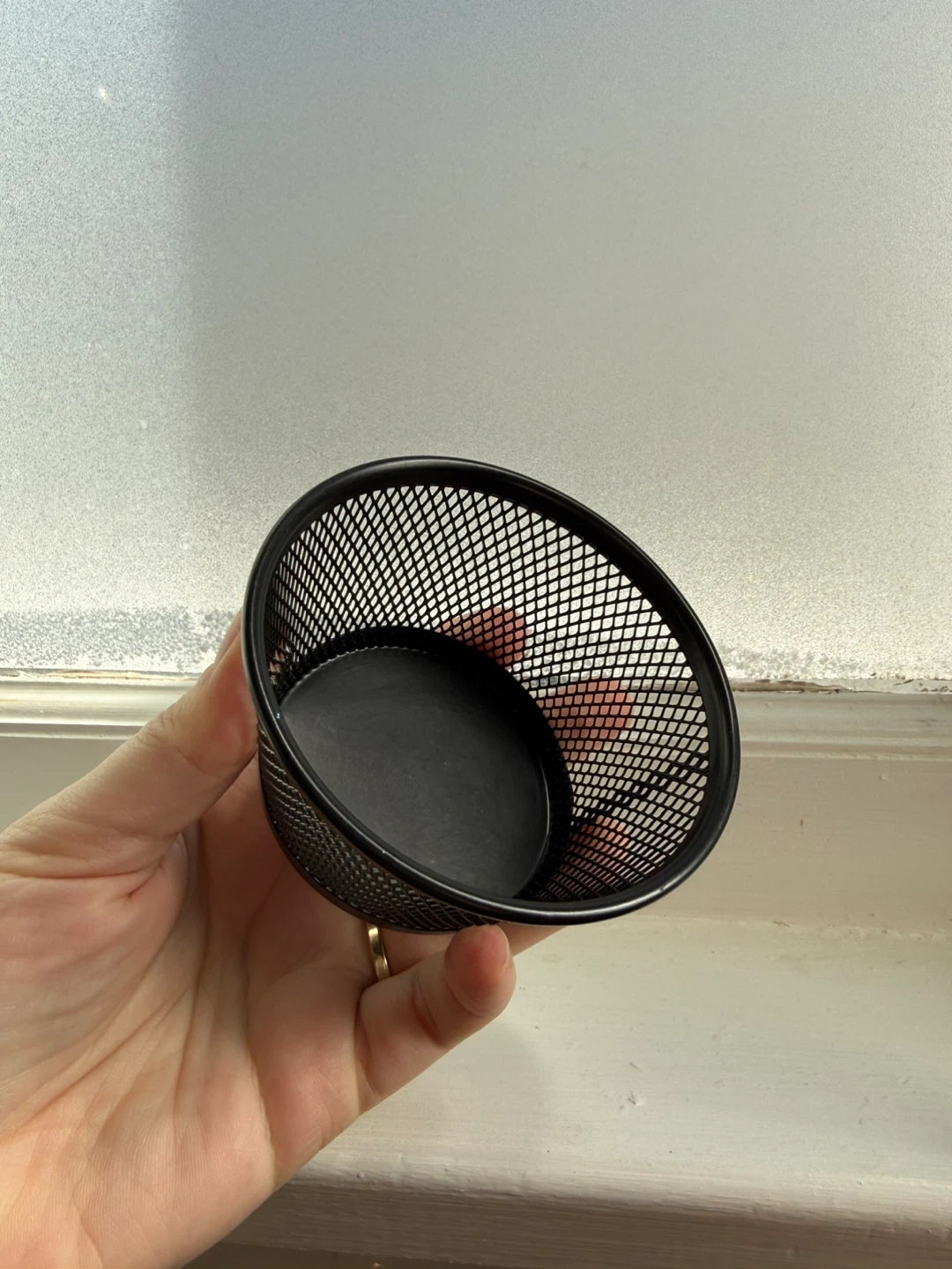 Black metal mesh dish to hold rubber bands, push pins, paper clips, candy, or anything you’d like