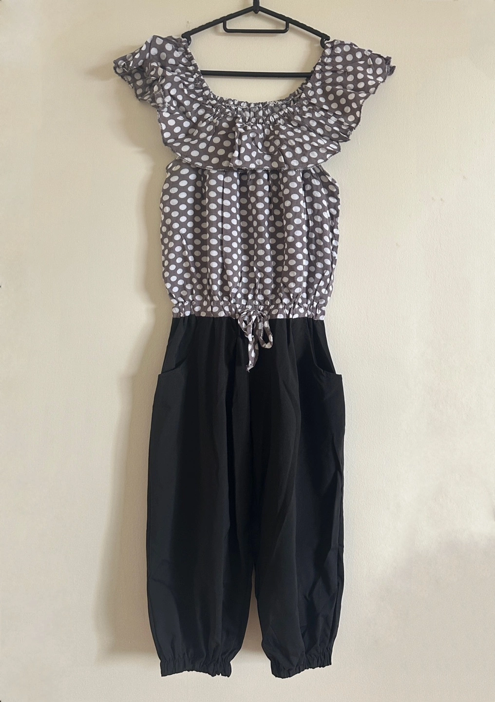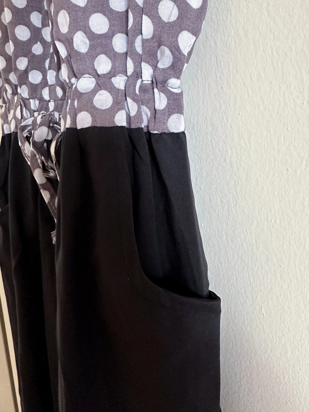 Bertha collar polka dots contrast jumpsuit with pockets