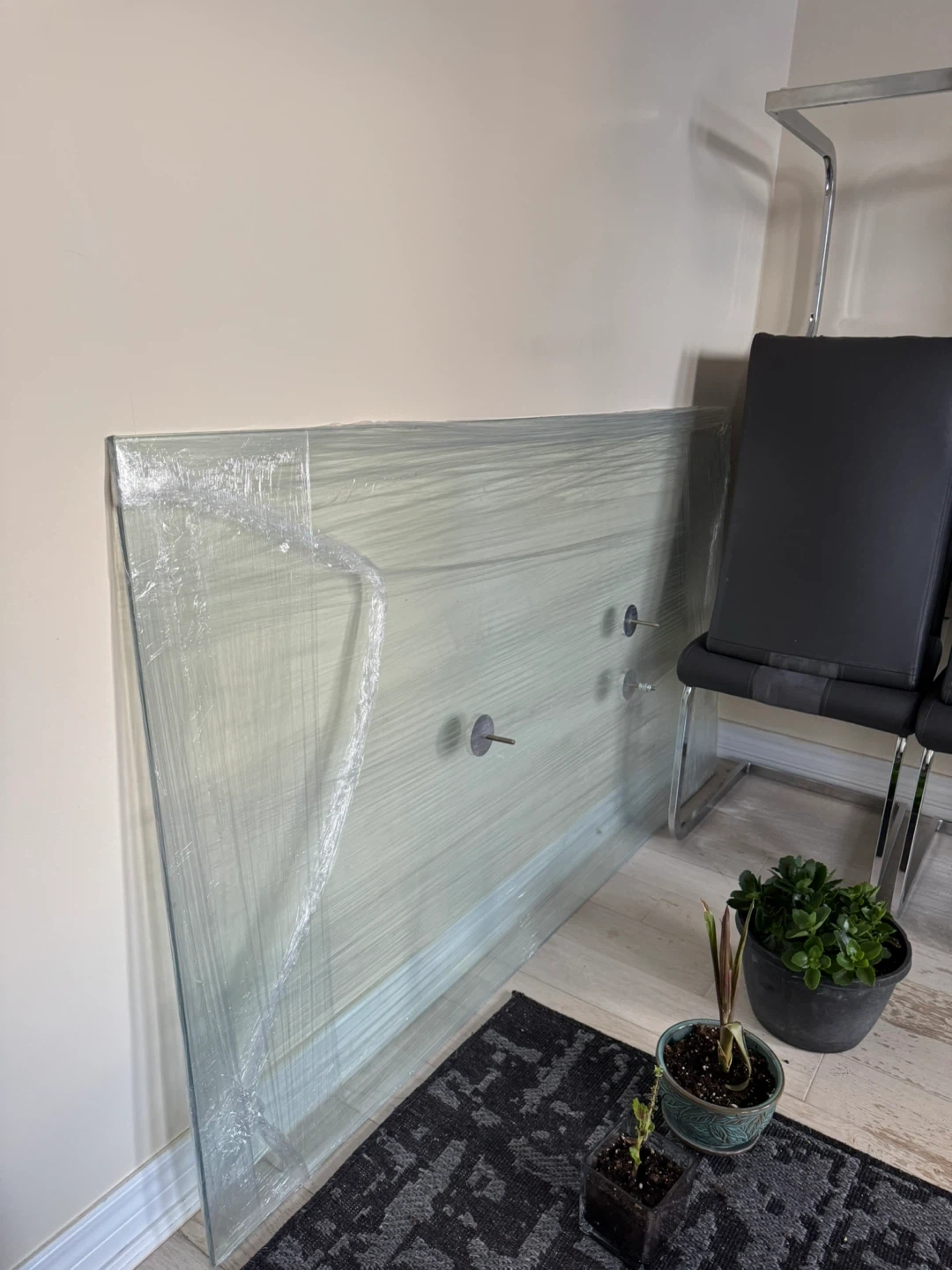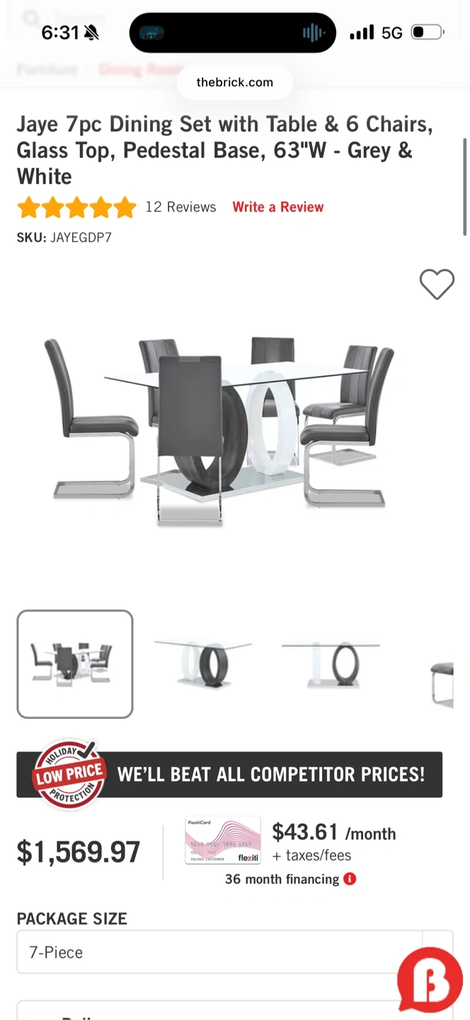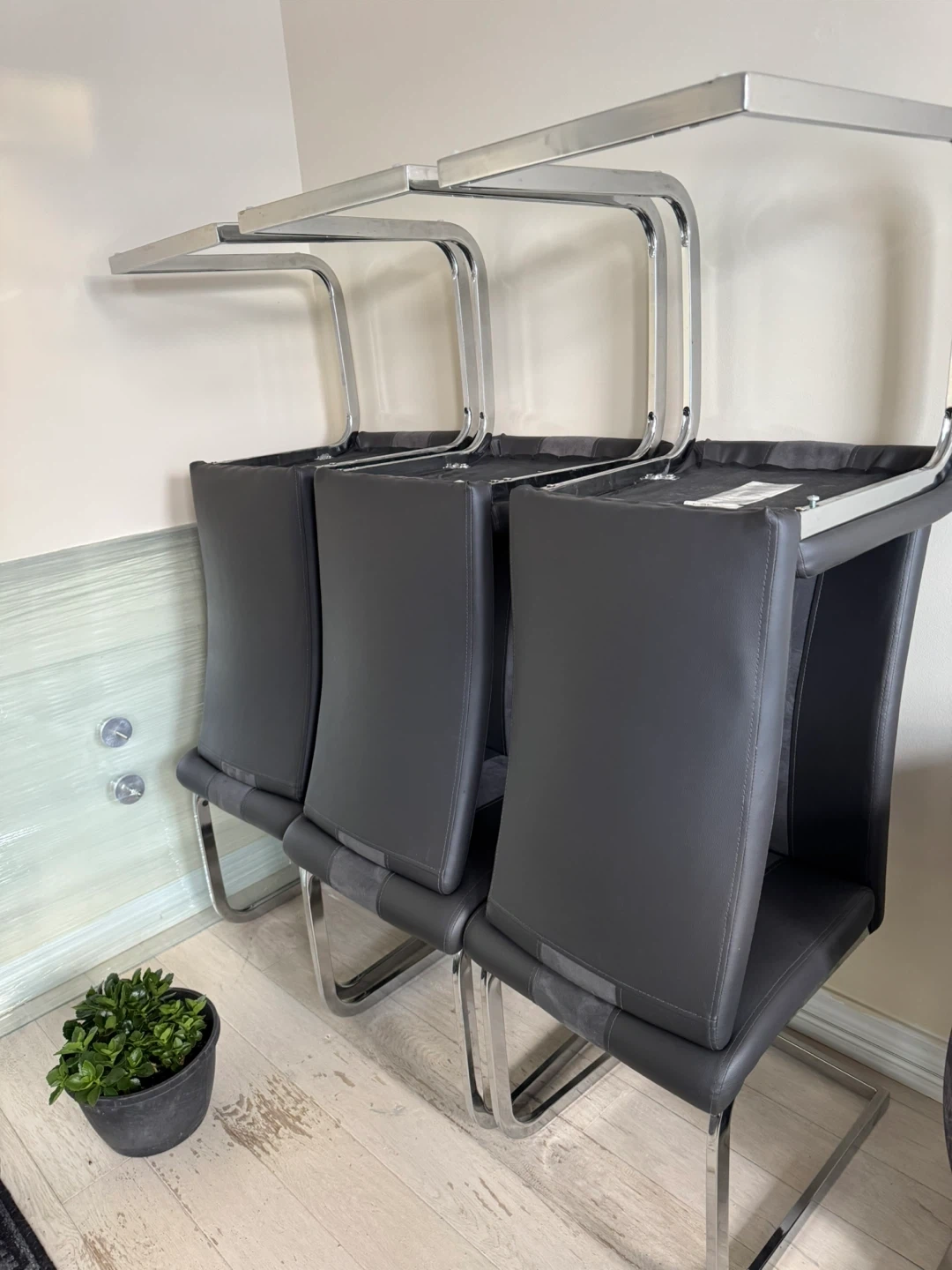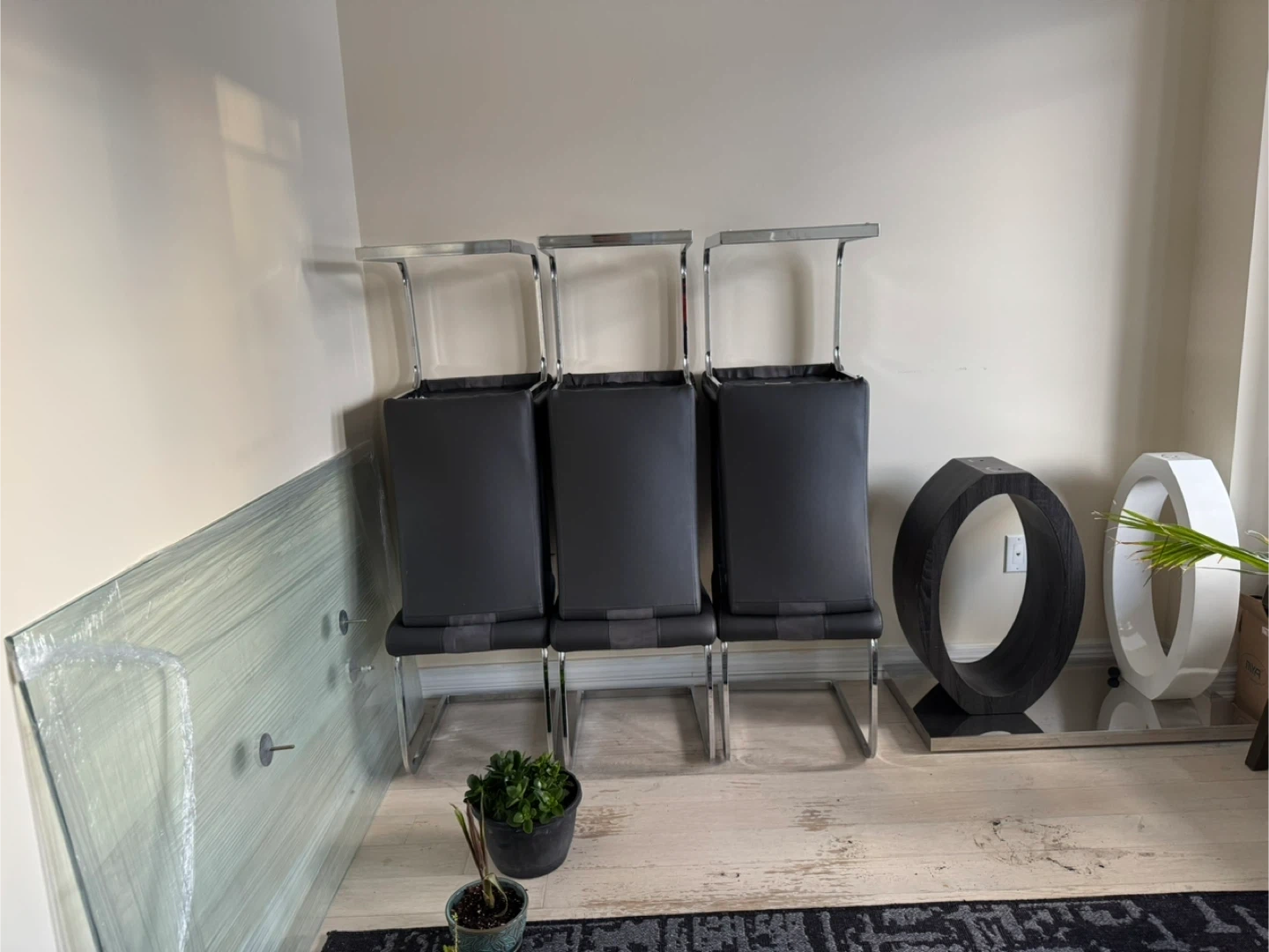 We have recently moved and cannot use the same dining set, which is why I am selling it. It has only been used for two years and was purchased from The Brick.