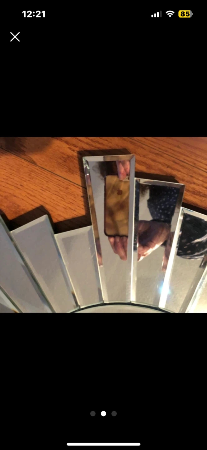 Decorative sunburst mirror. Features segmented mirror pieces radiating from a central mirrored circle. This mirror adds a touch of sparkle to any room! It's a statement piece for your wall.
