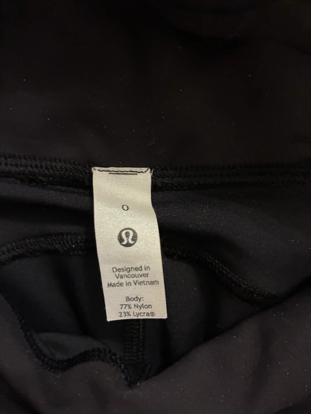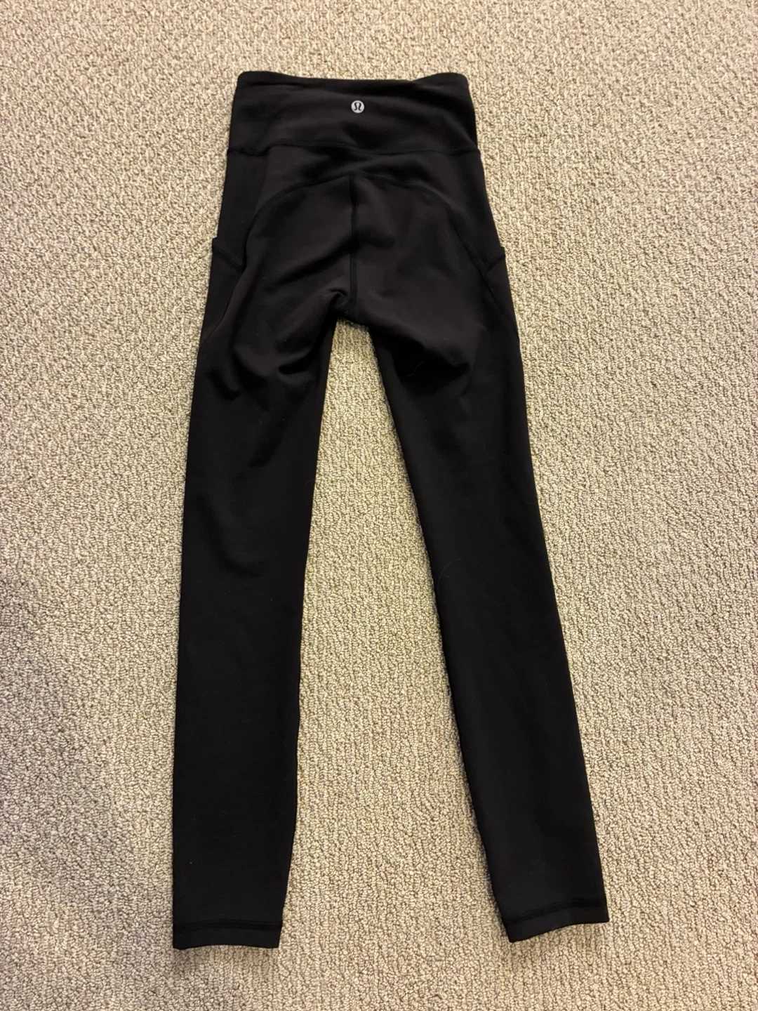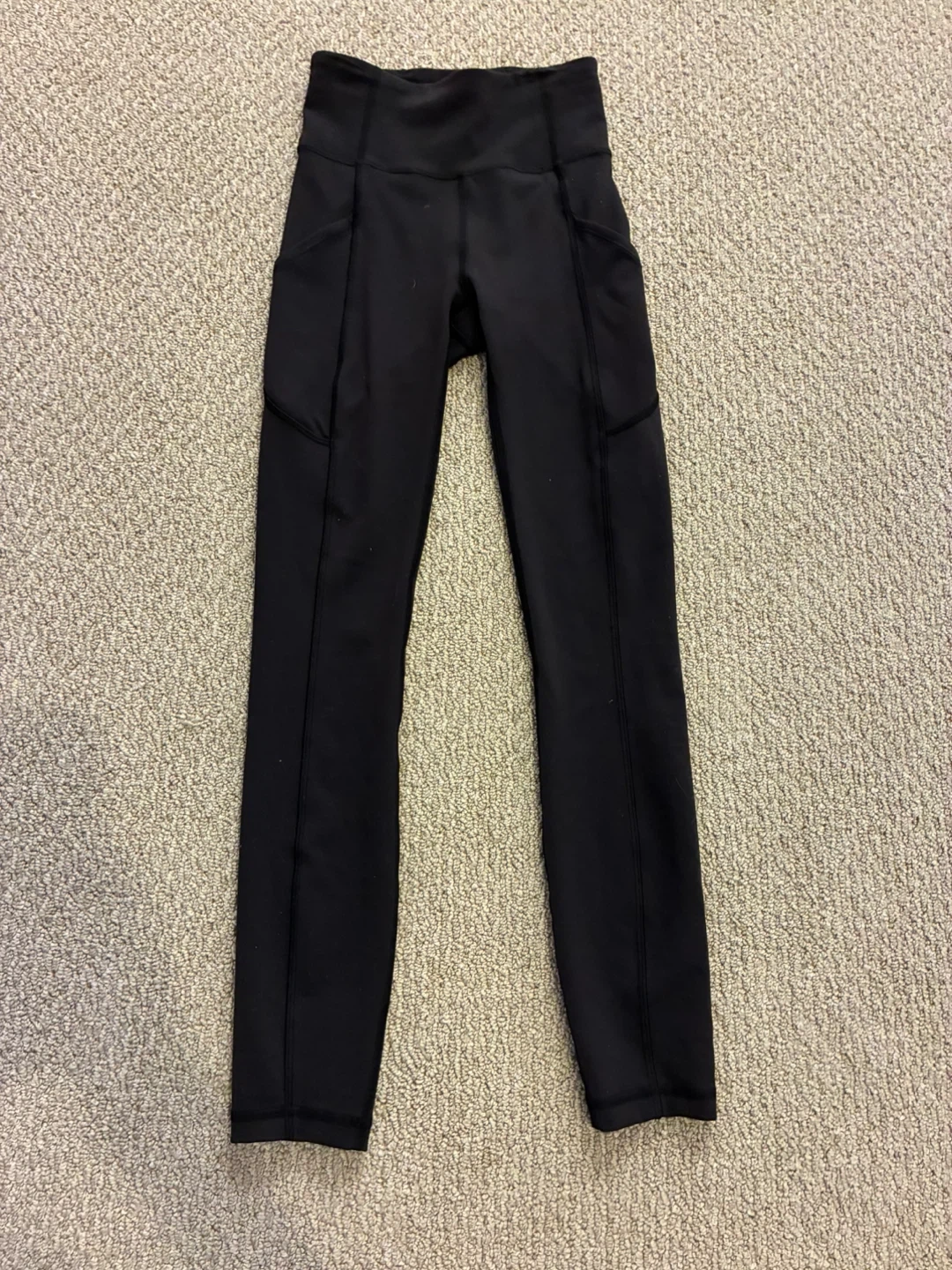 Lululemon black leggings designed in Vancouver. Body is 77% Nylon and 23% Lycra. These leggings feature side pockets. Size 0, rarely worn.