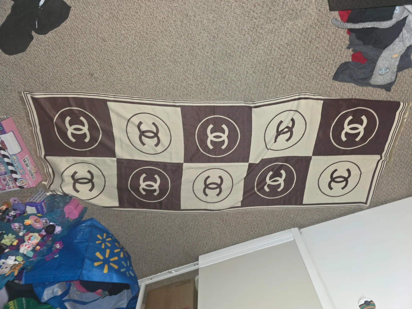 Selling a Chanel scarf in a lovely brown and white colour scheme. It features the iconic Chanel logo pattern throughout. Perfect for adding a touch of elegance to any outfit!