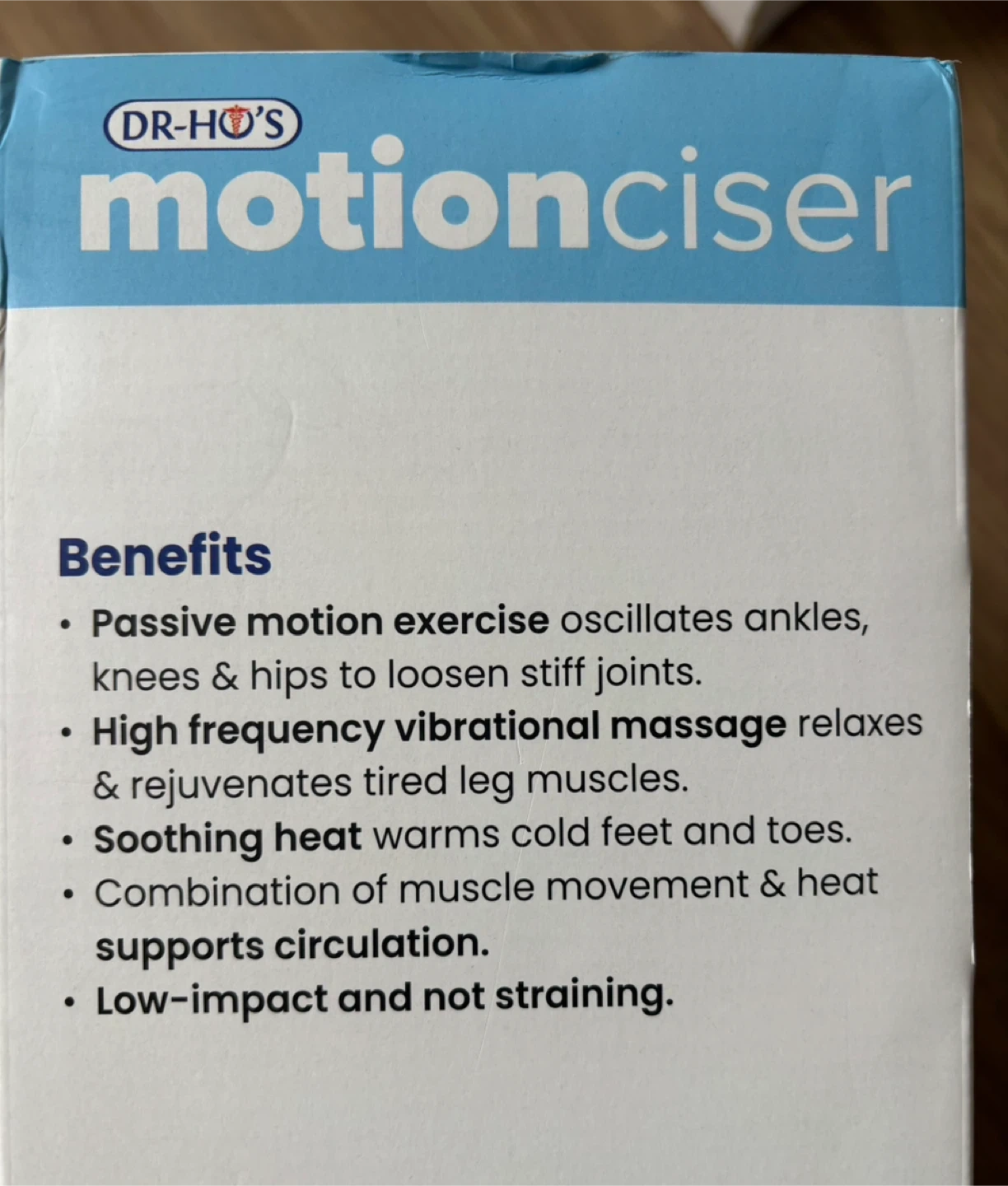 *This DR-HO'S MotionCiser provides passive motion exercise for your ankles, knees, and hips. It offers high-frequency vibration massage and soothing heat to relax tired muscles. It's low-impact and not straining.